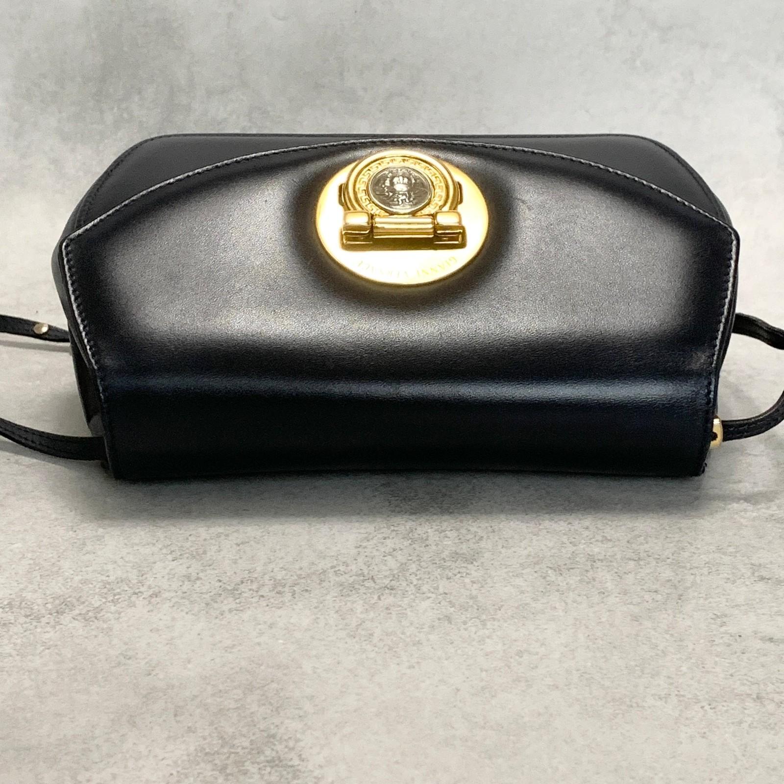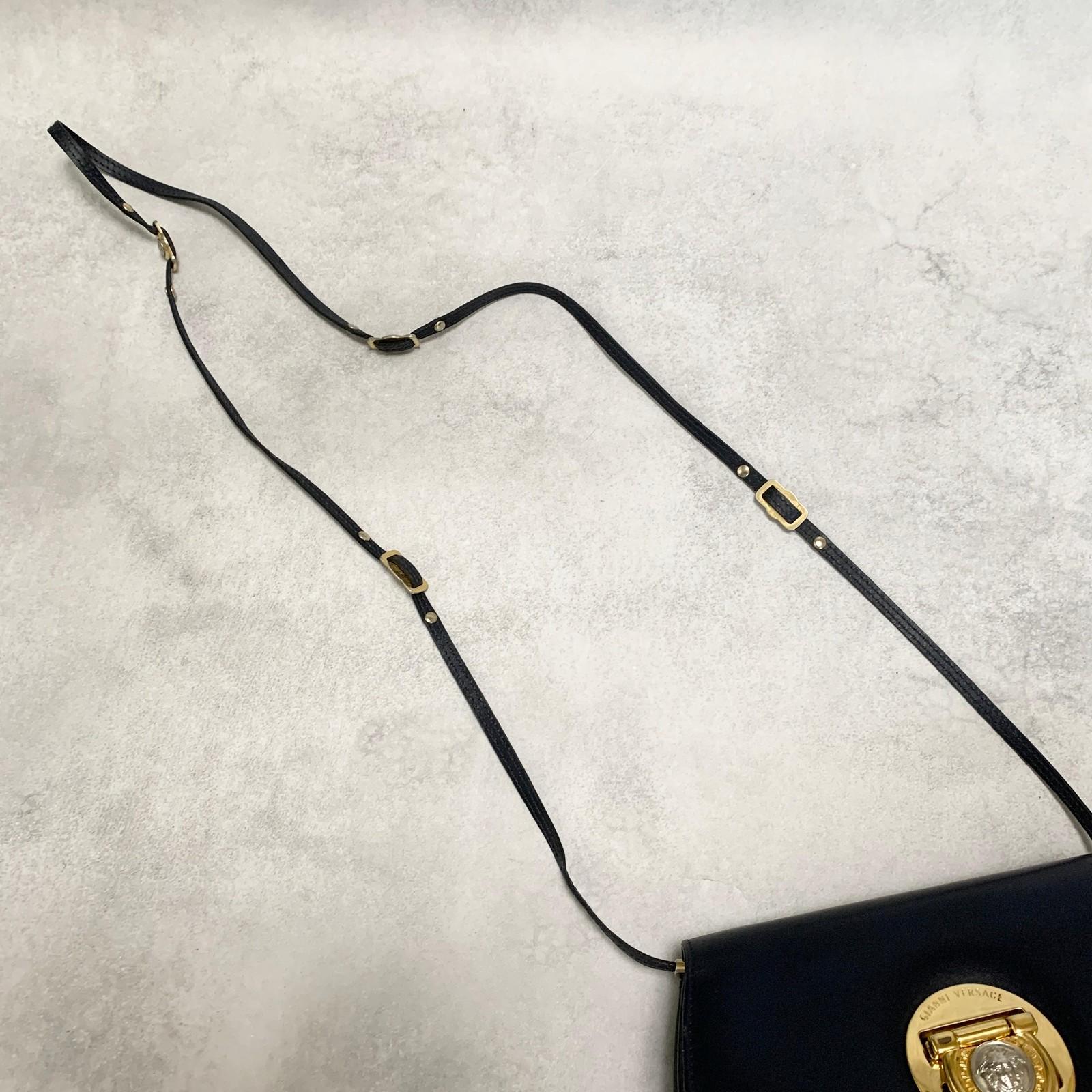 GIANNI VERSACE Shoulder Bag Purse Medusa Leather Dark Navy Women's Auth Used
