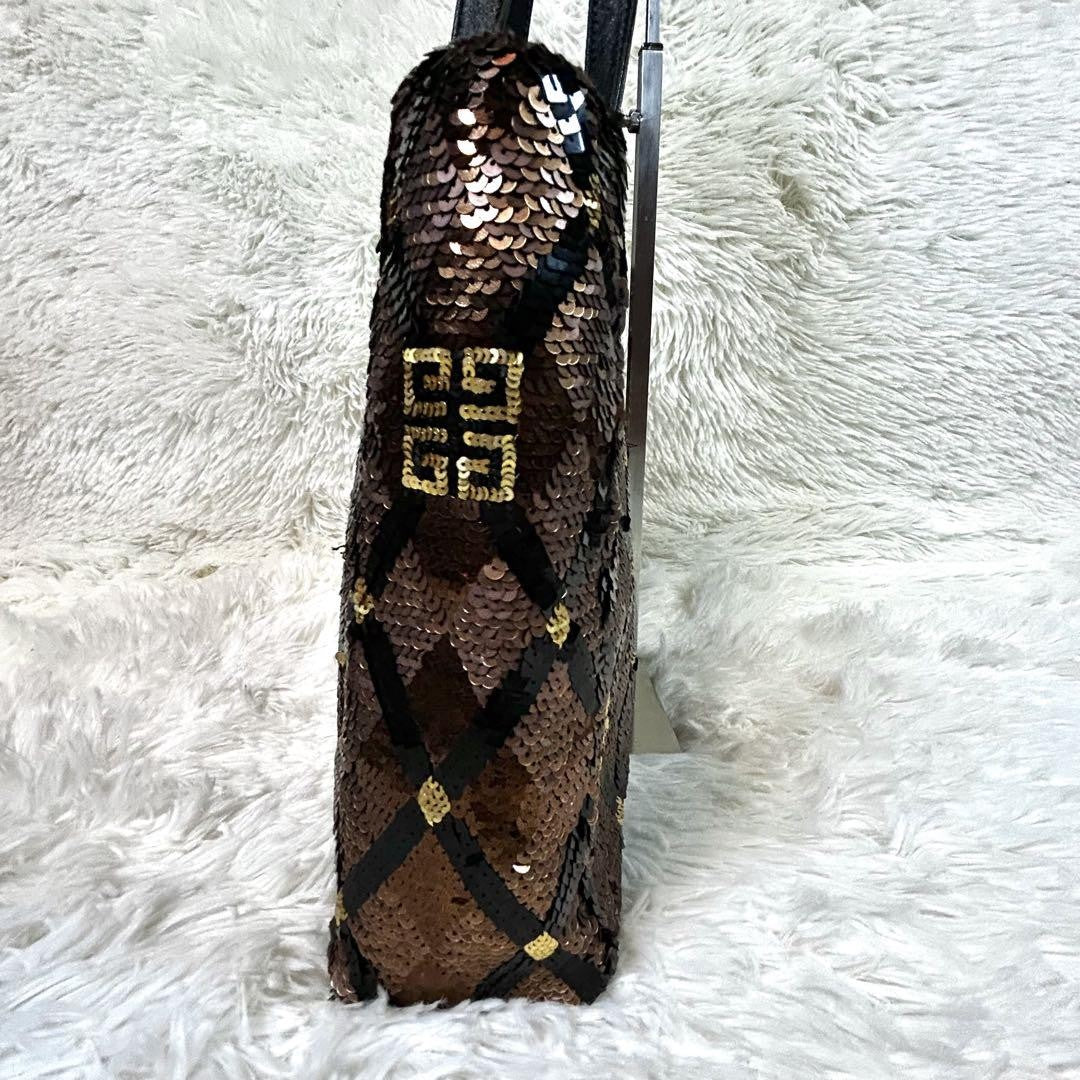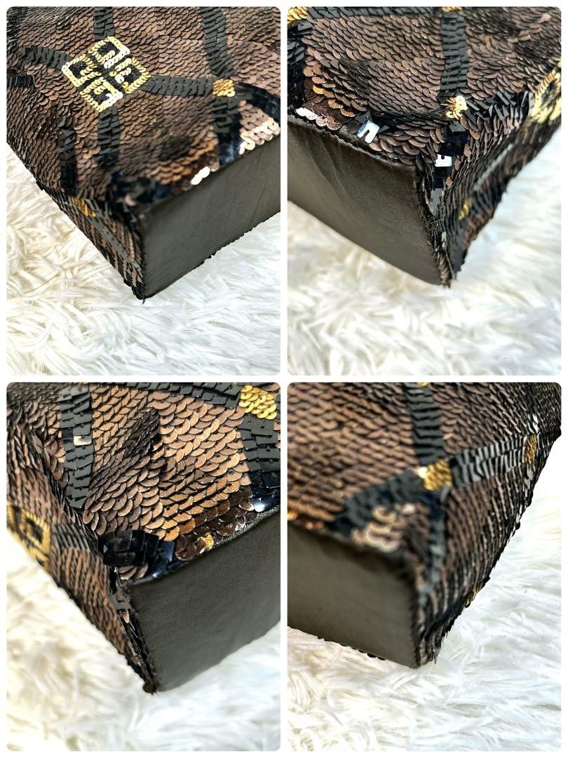 GIVENCHY Hand Bag Tote Purse 4G Leather Polyester Brown Gold Black Authentic