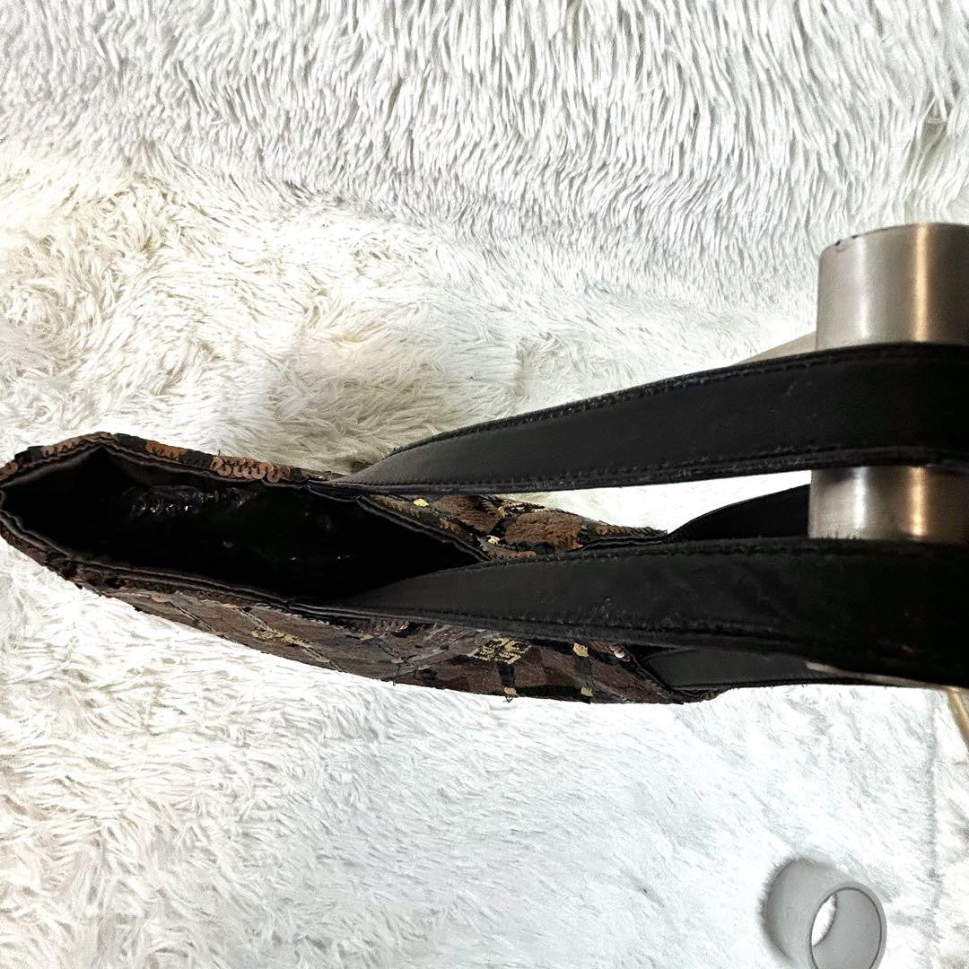 Although the sequins are slightly frayed, there are no major scratches or stains, and the item is in excellent condition for continued use.