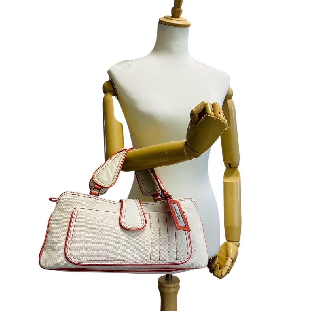 GIVENCHY Hand Bag Tote Purse Canvas Pink Beige Authentic