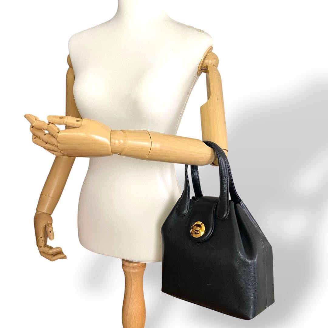 GIVENCHY Hand Bag Tote Purse Turn Lock Leather Black Authentic