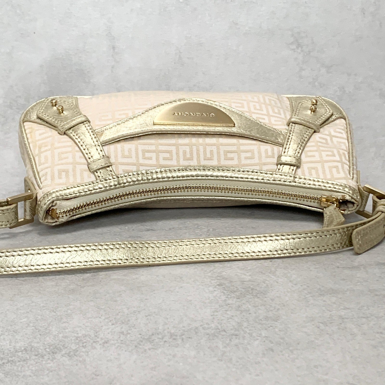 GIVENCHY Shoulder Bag 4G Logo Hand Purse Canvas White Gold Used Women's Auth
