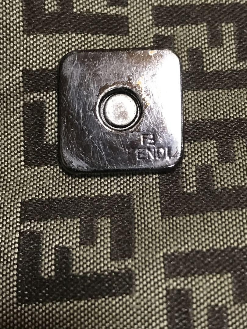 The bag's opening is secured with a magnetic clasp, but one of the clasps has come off.