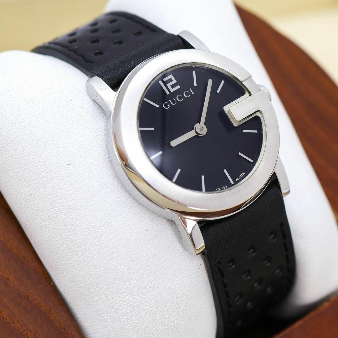 GUCCI 101L Quartz Watch Wristwatch Silver Black Women's Authentic