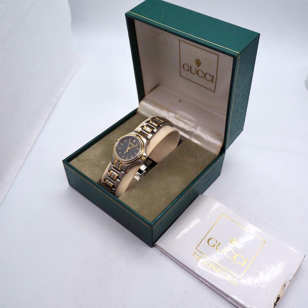GUCCI 9040L Quartz Watch Wristwatch GG Gold Silver Black Women's Authentic