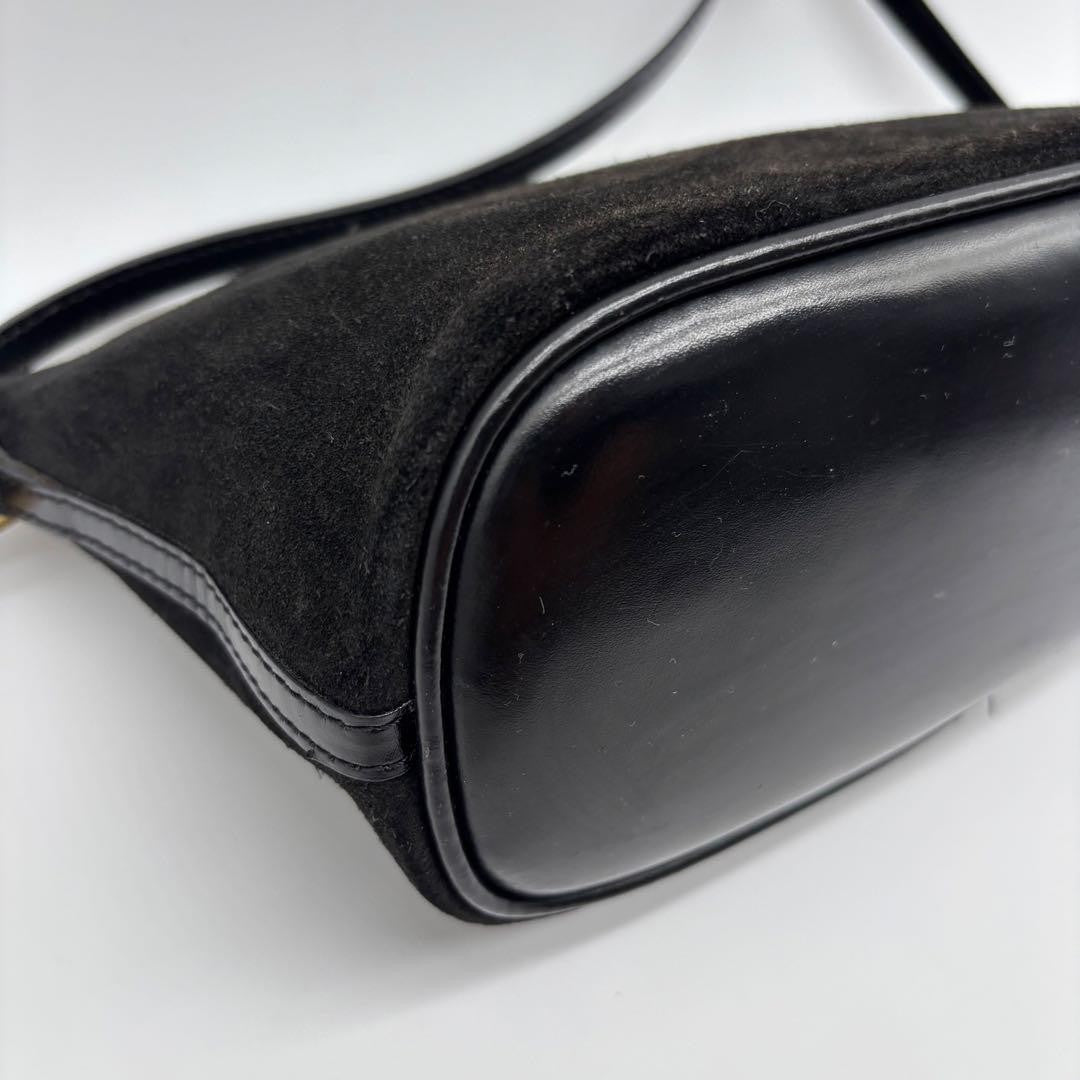 GUCCI Accessory Pouch Hand Bag Tote Purse Suede Black Authentic