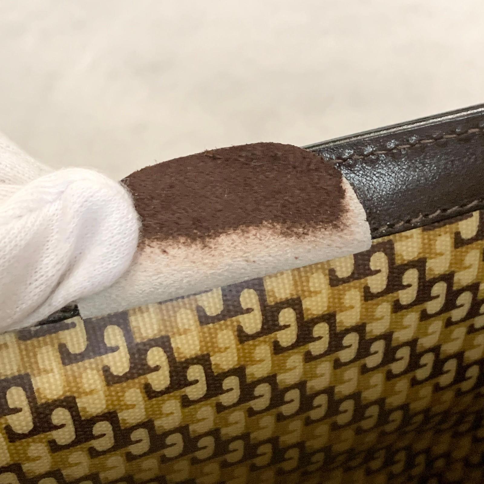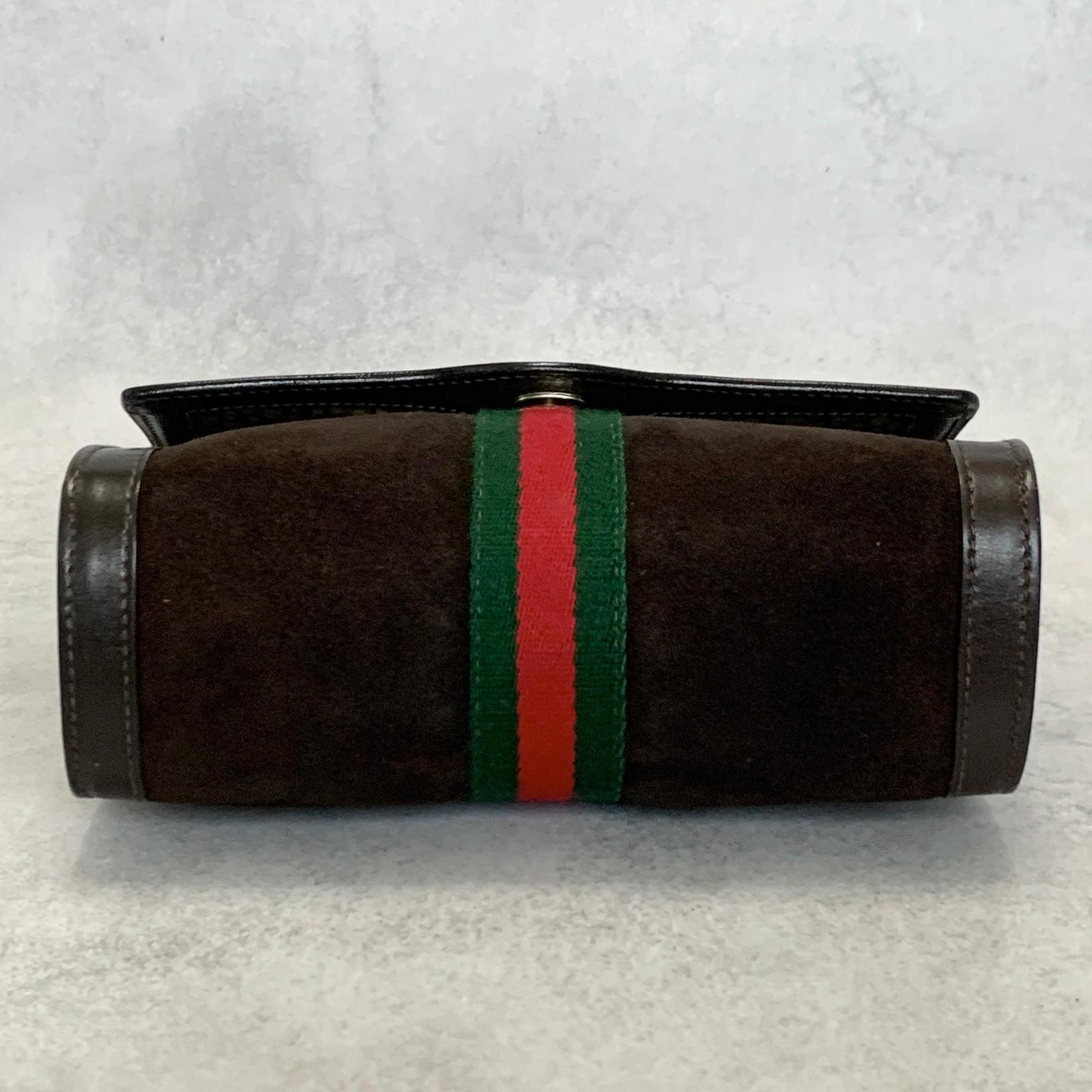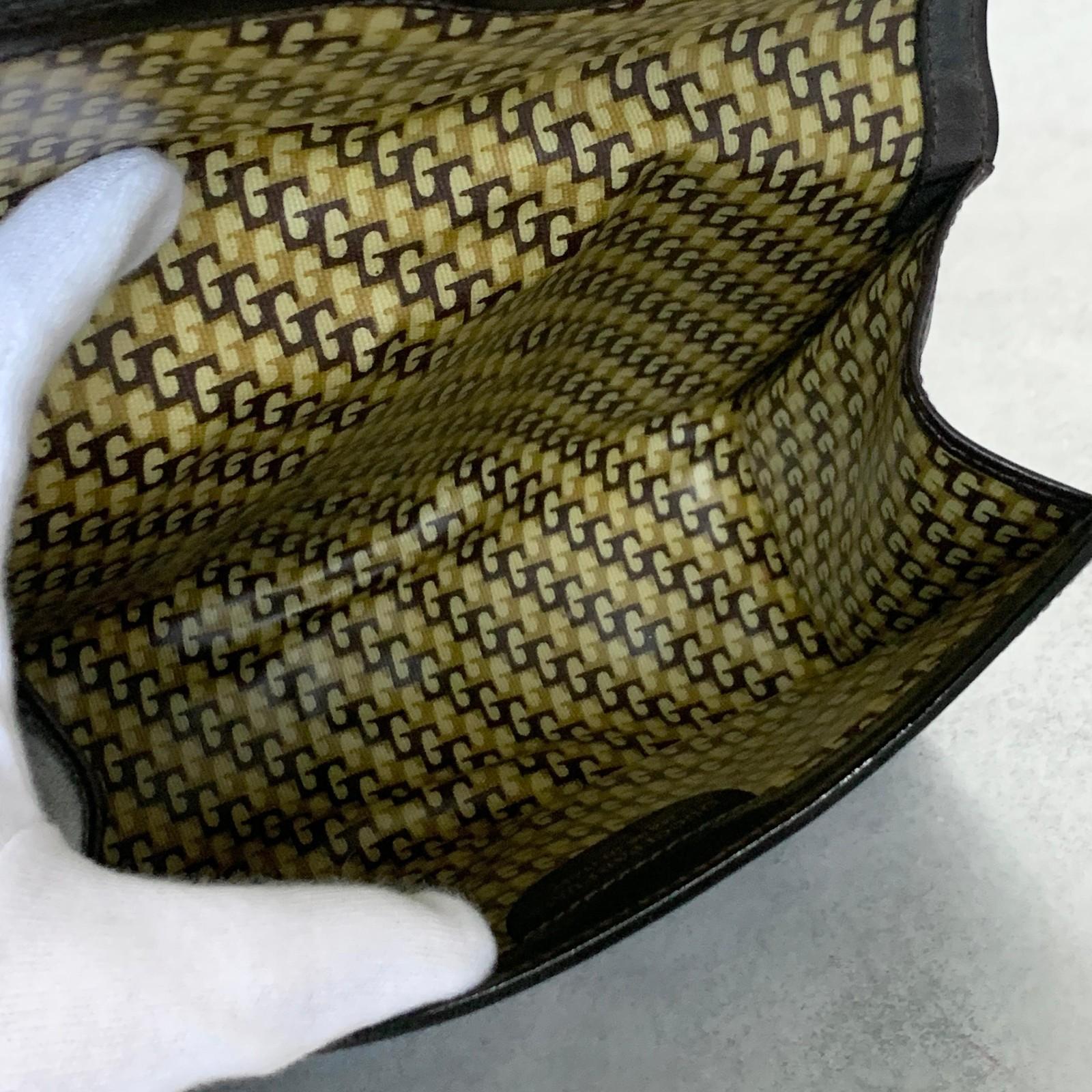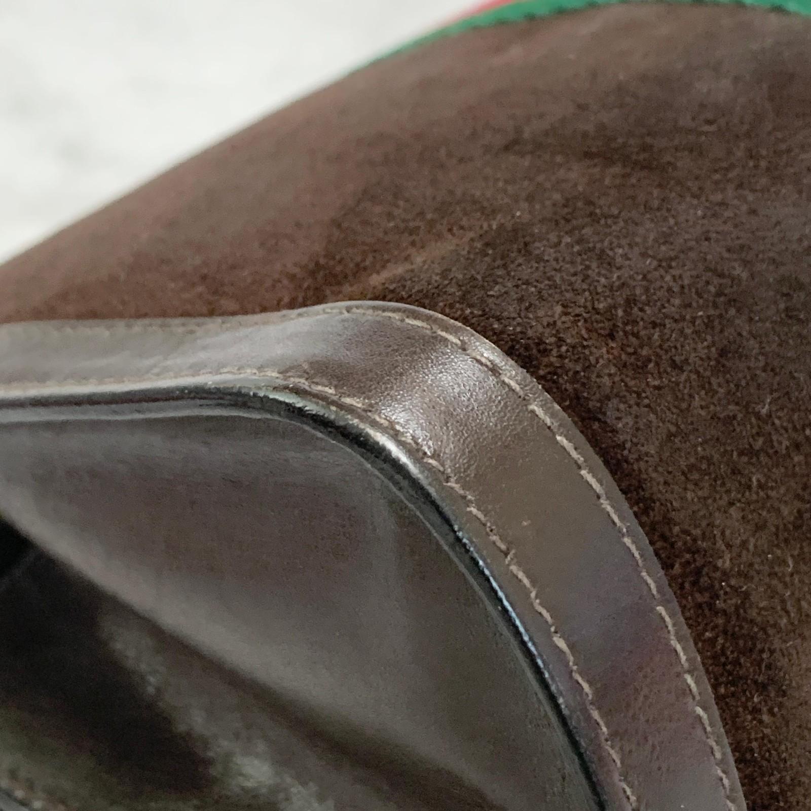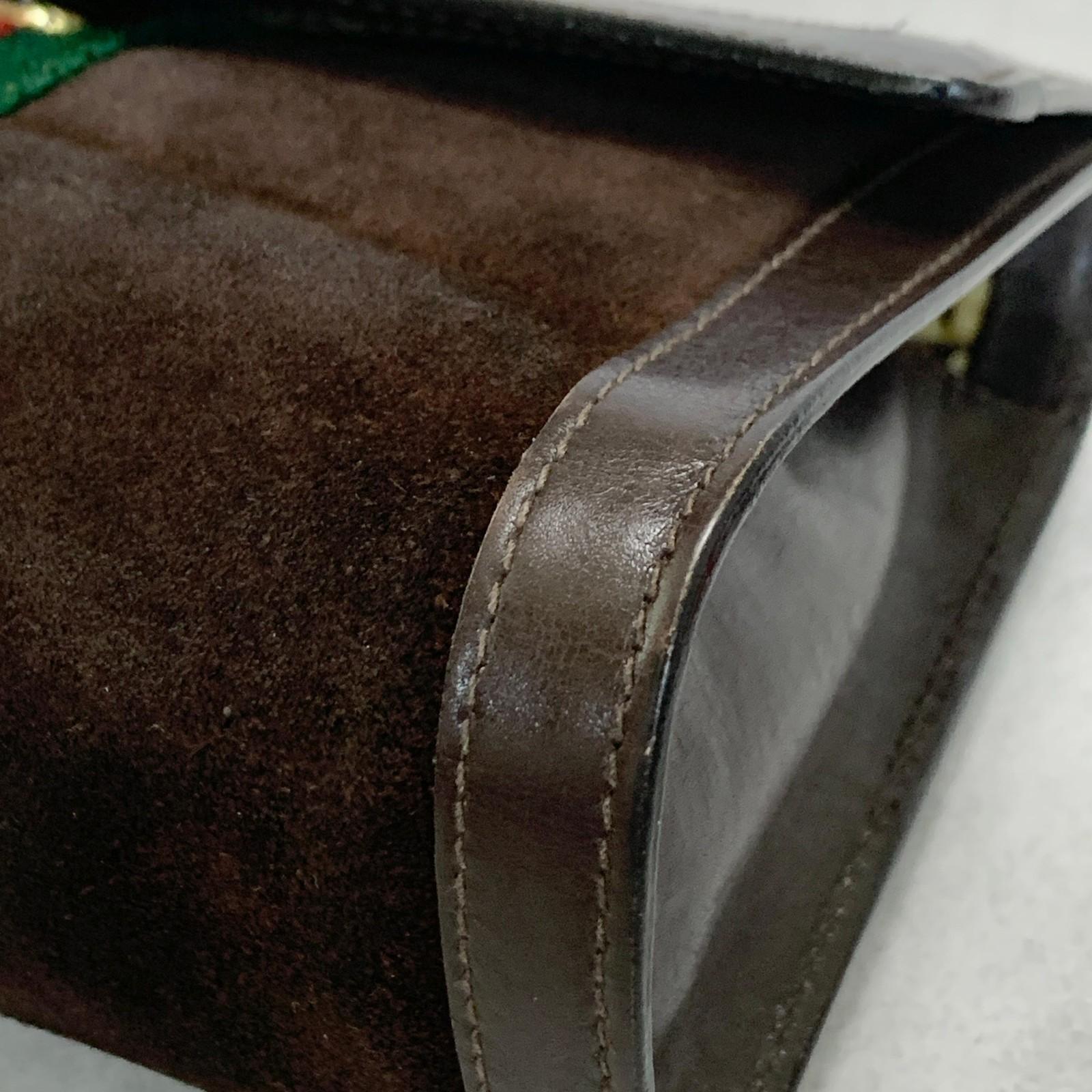 GUCCI Bag Sherry Line GG Clutch Purse Hand Suede Brown Gold Used Authentic