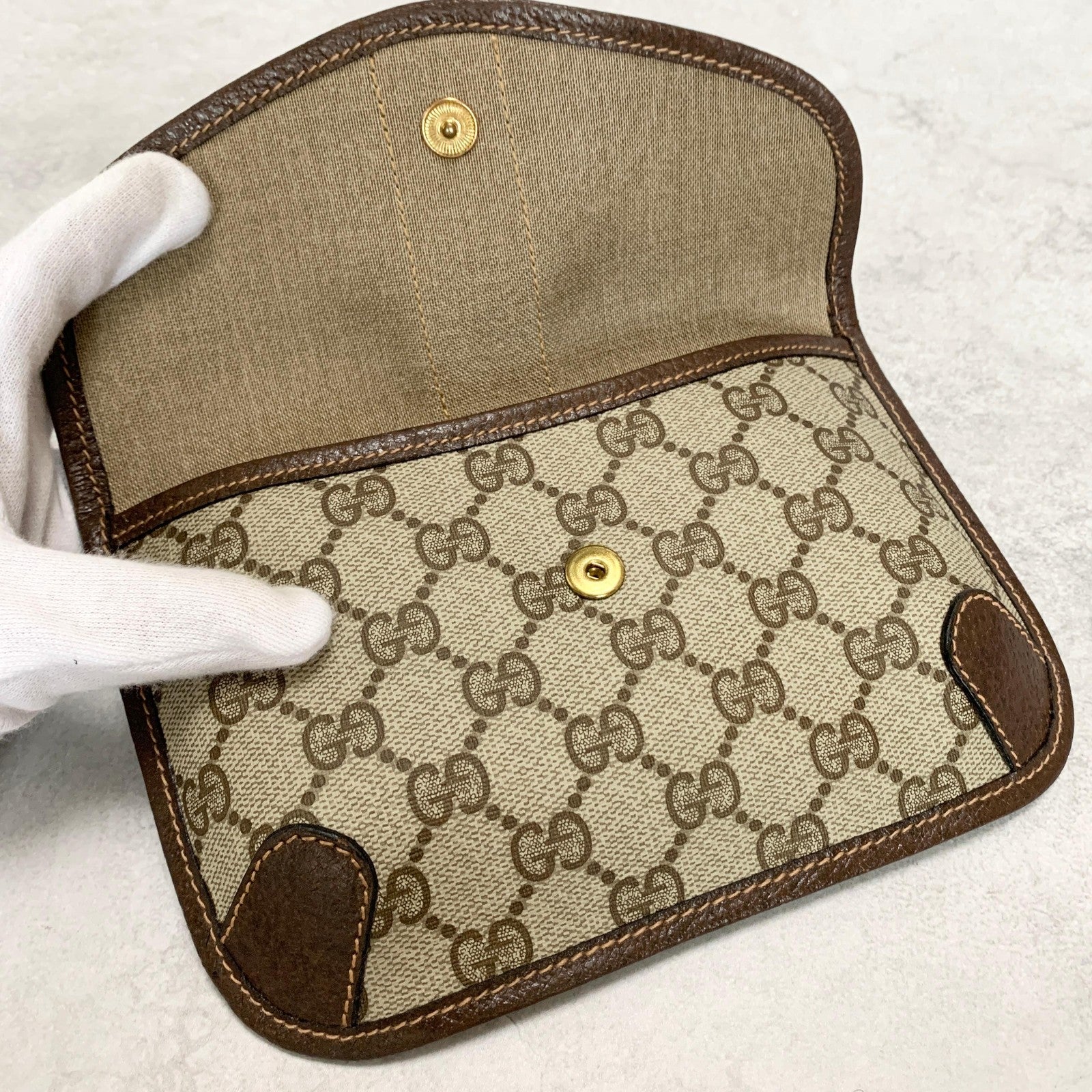 GUCCI Bag Supreme Sherry Line GG Clutch Purse Hand Leather Beige Brown Authentic
