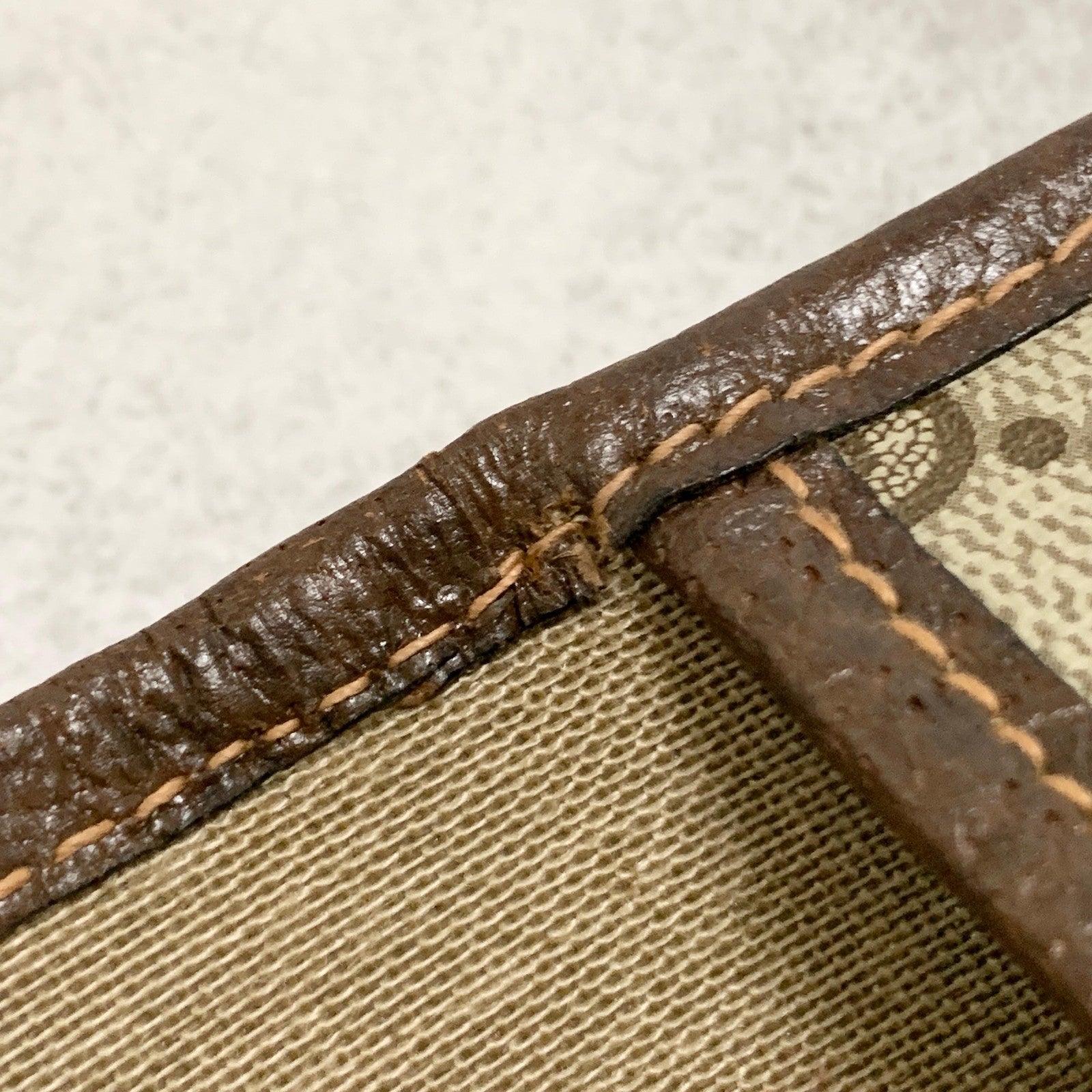 Small crack on inside of base of flap.