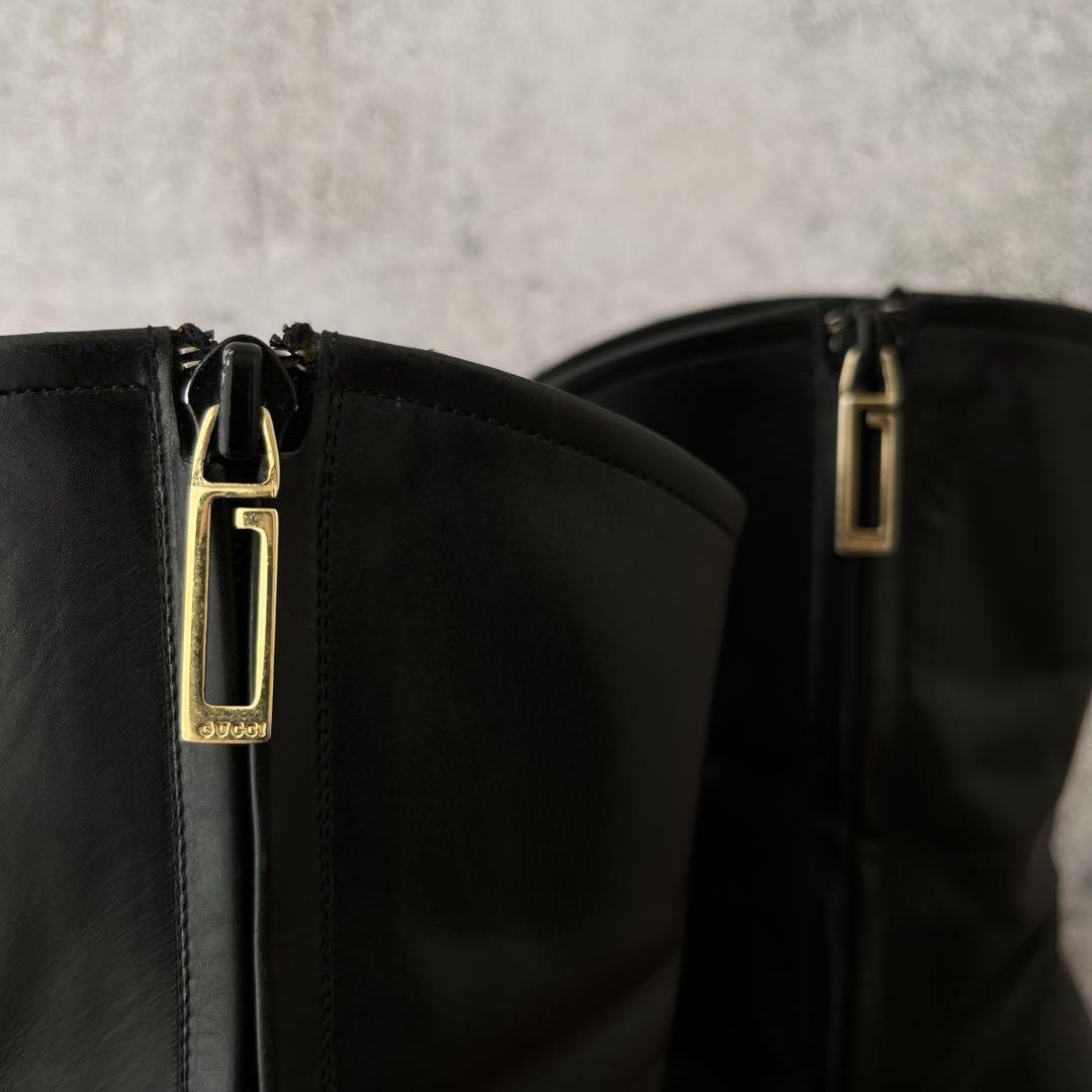GUCCI Boots Bootie Shoes EU 37 US 7 Leather Black Authentic