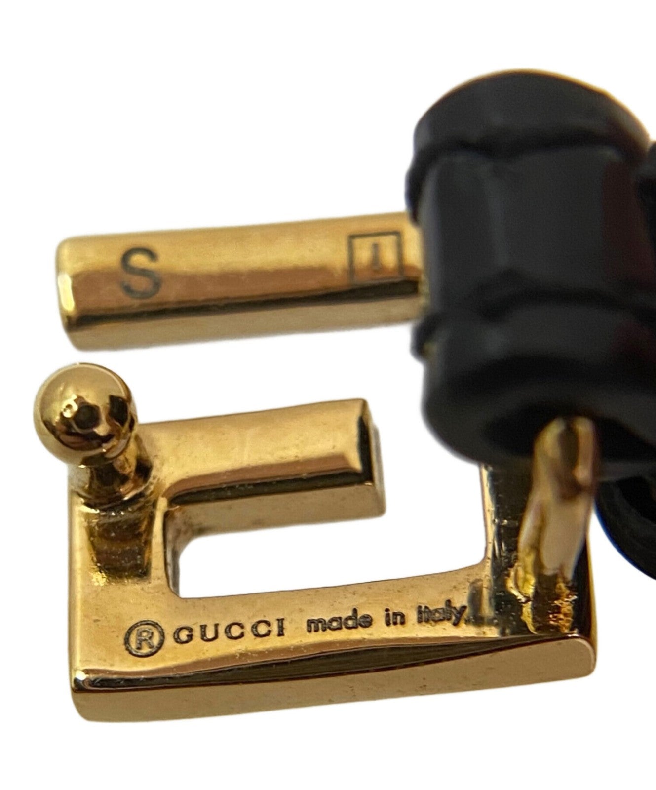 GUCCI Bracelet Bangle G Plate Leather Black Women Accessory Authentic