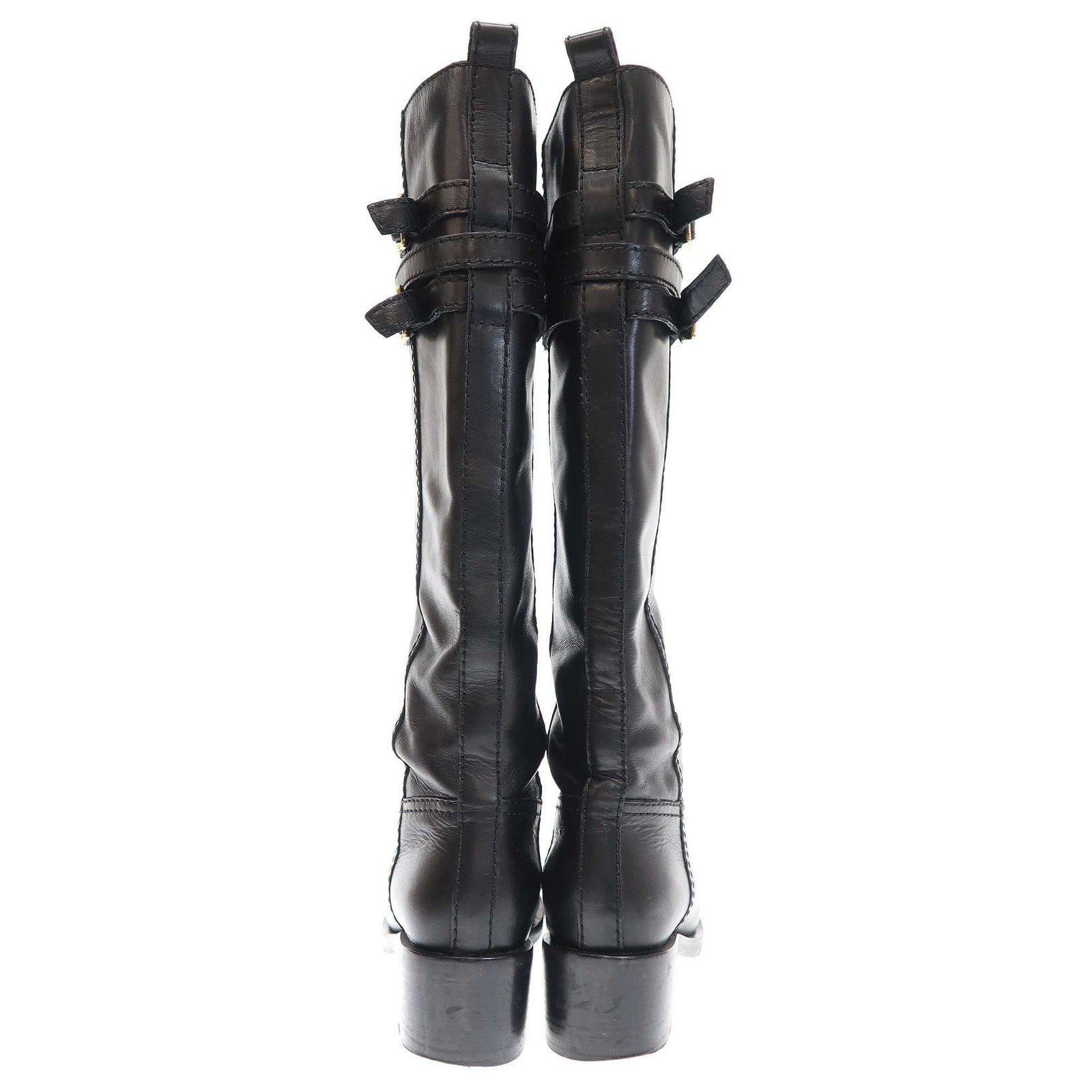 GUCCI Double Belt Long Boots Shoes EU 36 US 6 Leather Black Authentic