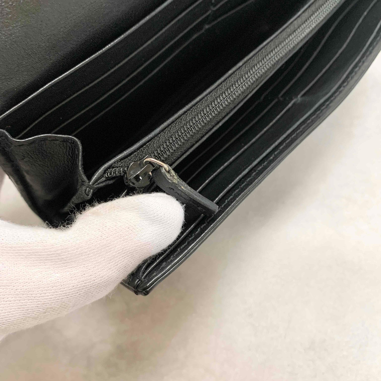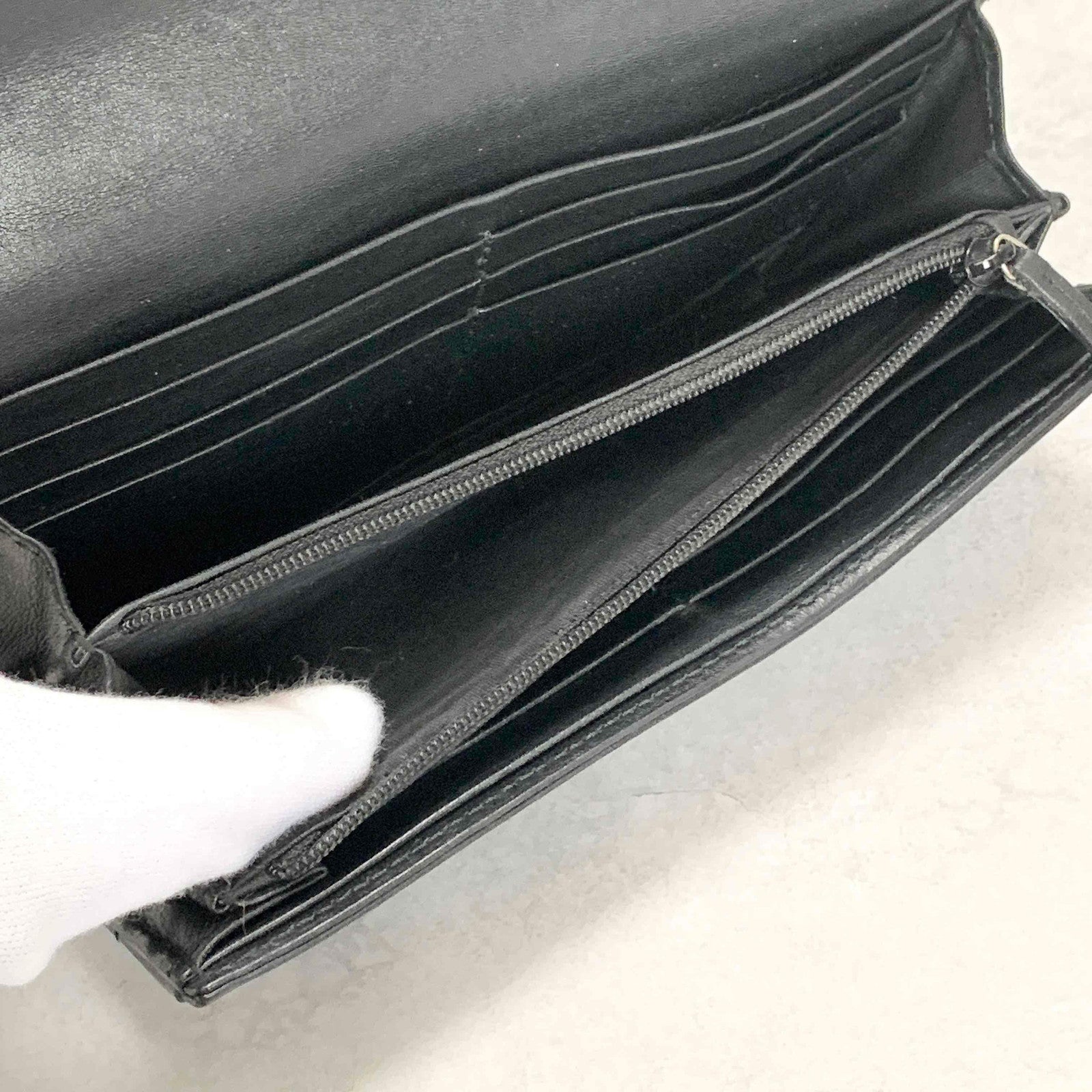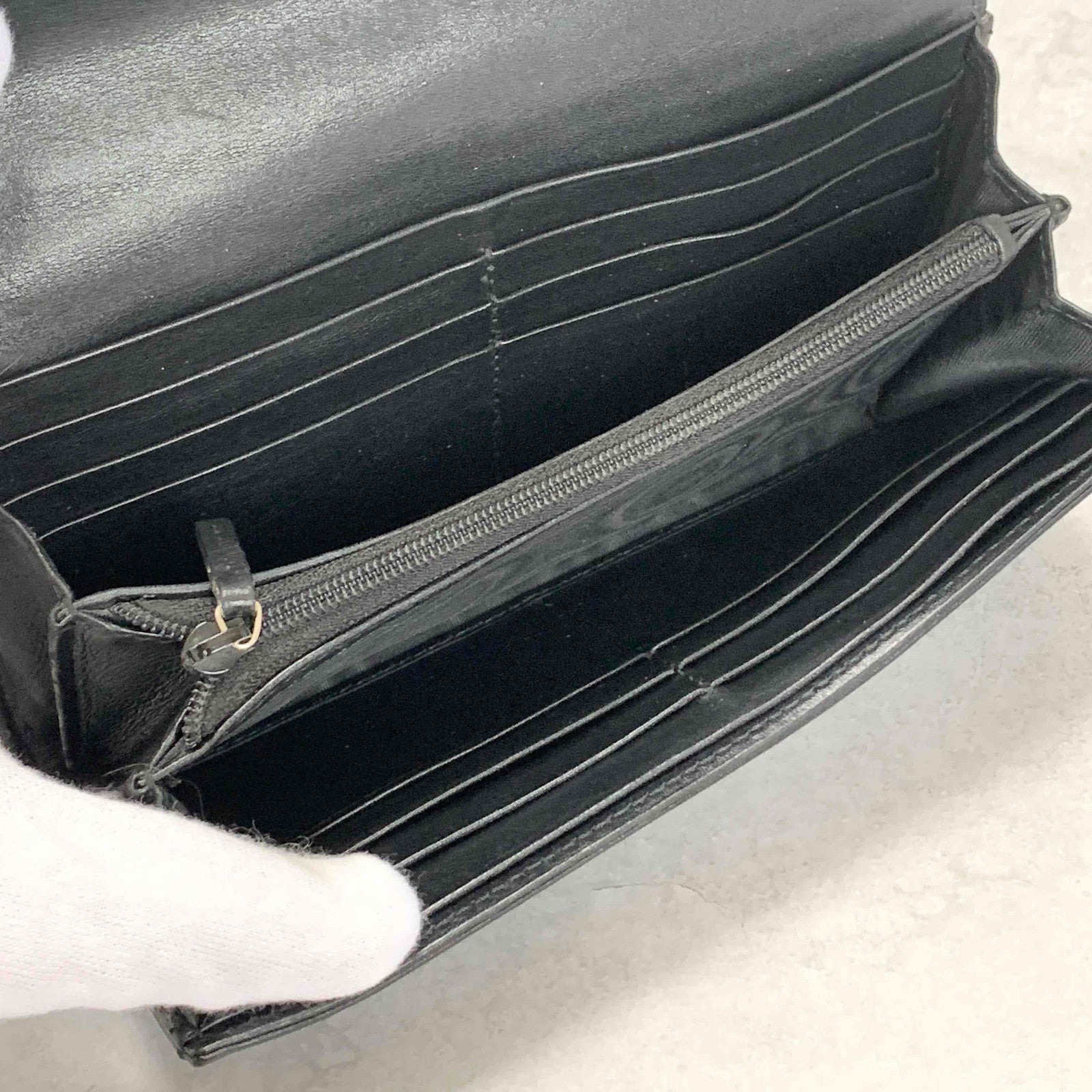 GUCCI GG Marmon Long Wallet Flap Quilted Leather Black Gold Used Auth Women's