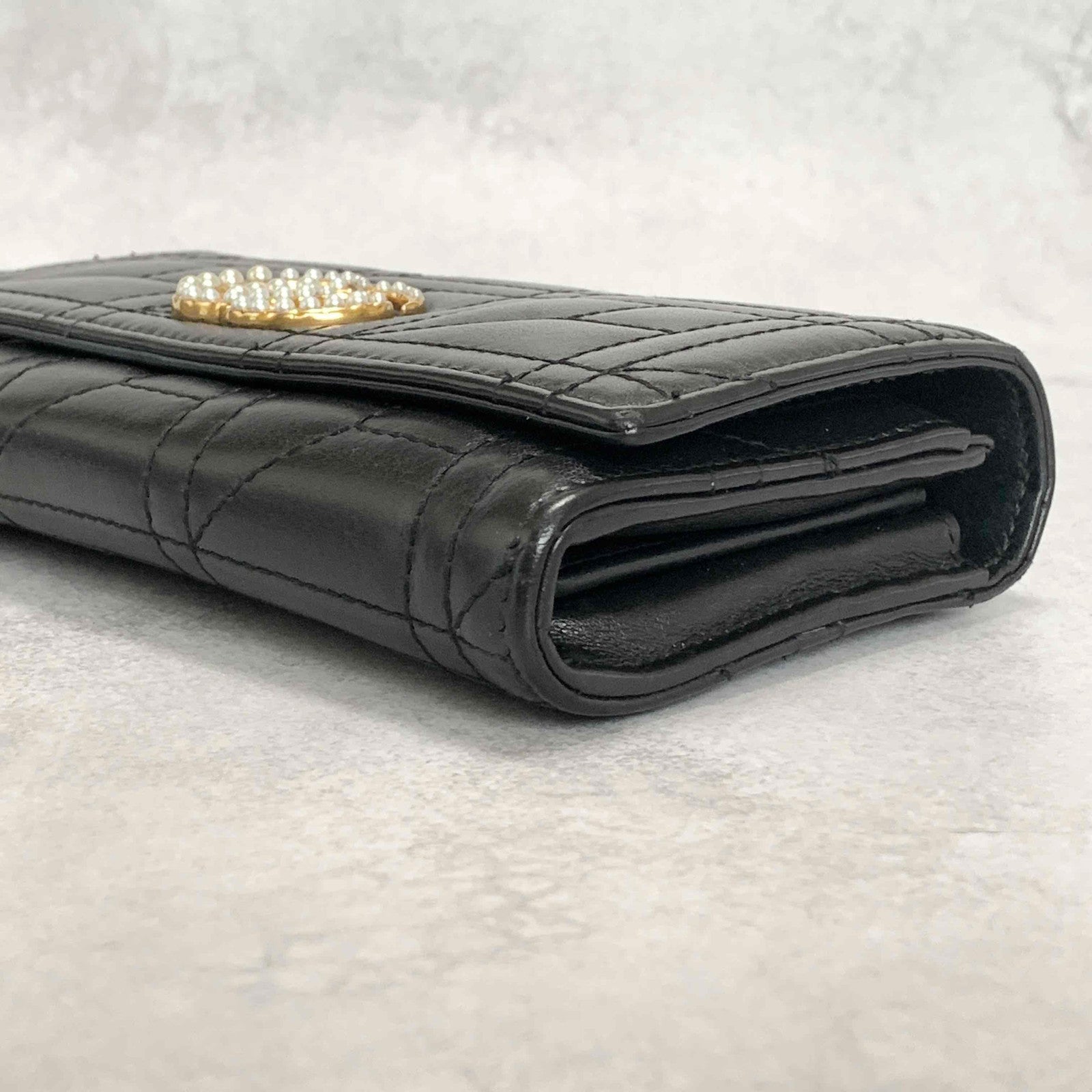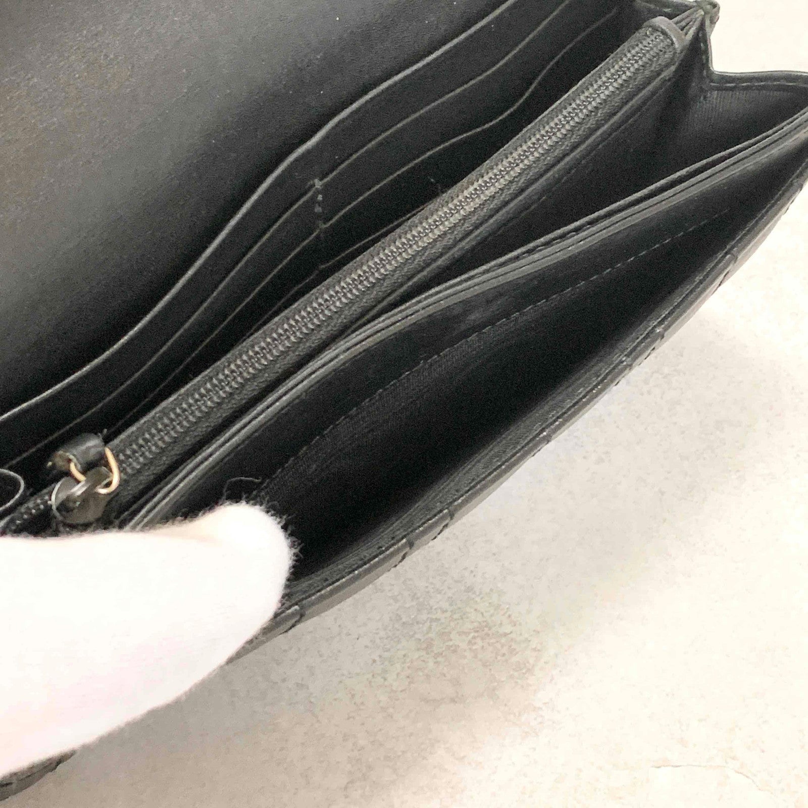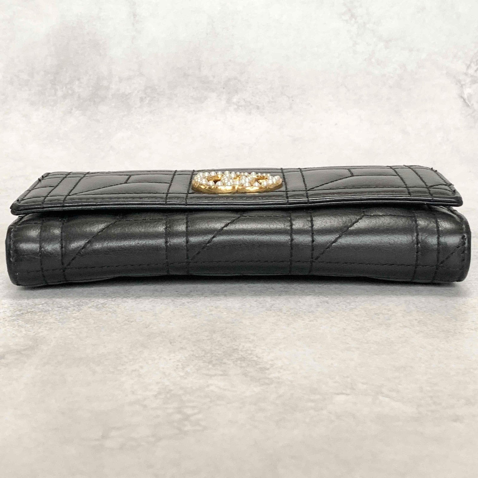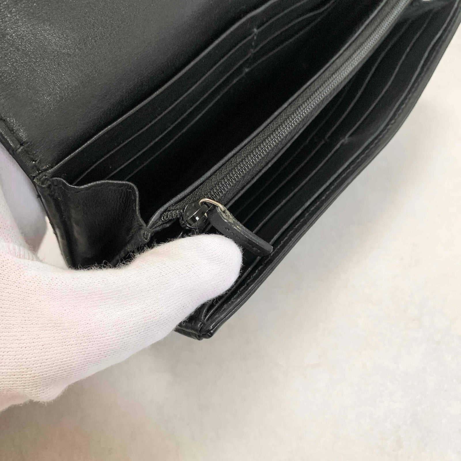 GUCCI GG Marmon Long Wallet Flap Quilted Leather Black Gold Used Auth Women's