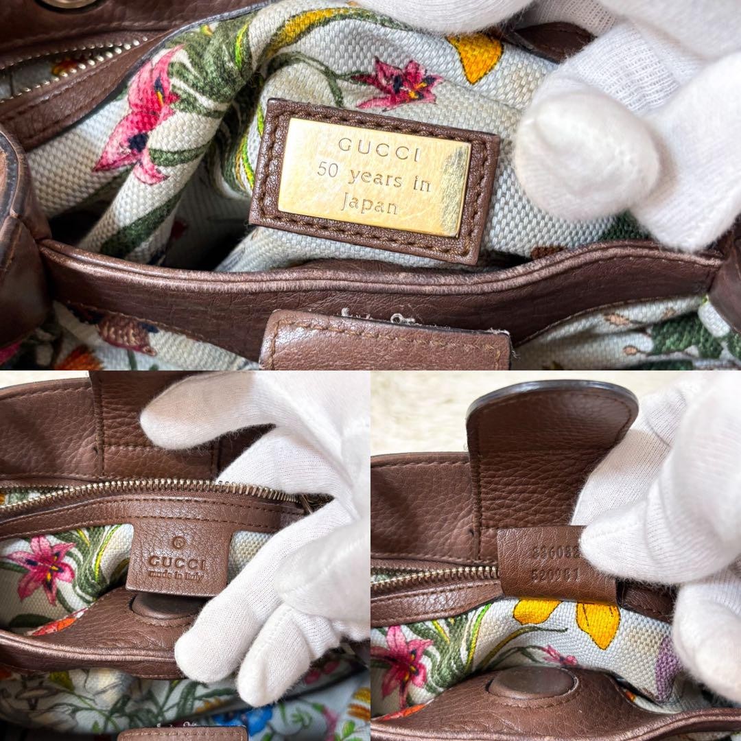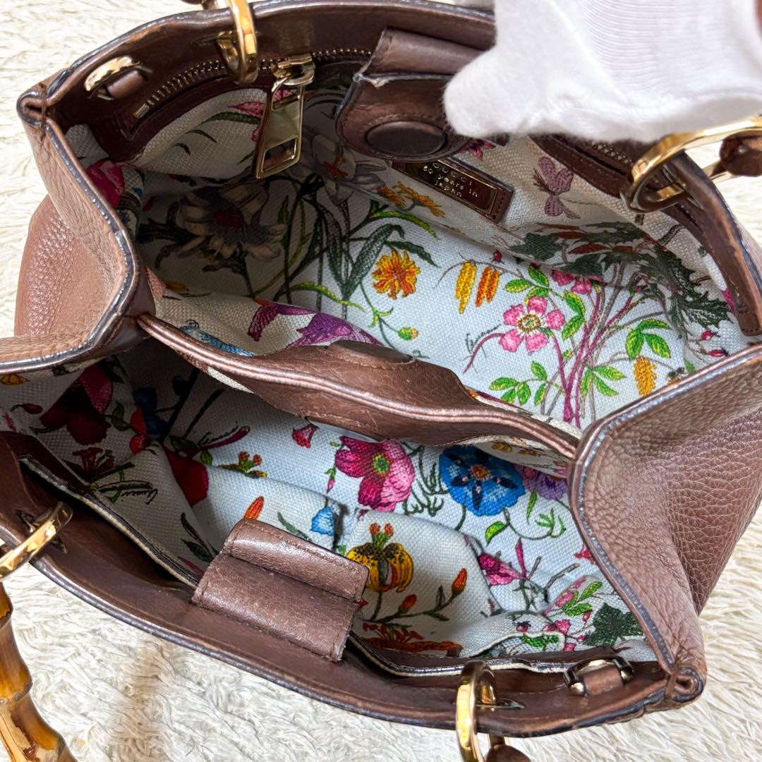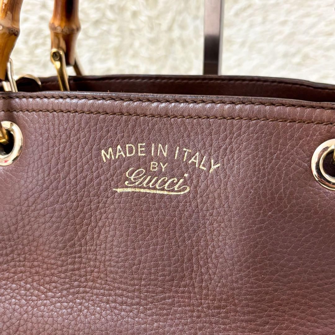 GUCCI Hand Bag Tote Purse Bamboo Leather Brown Authentic
