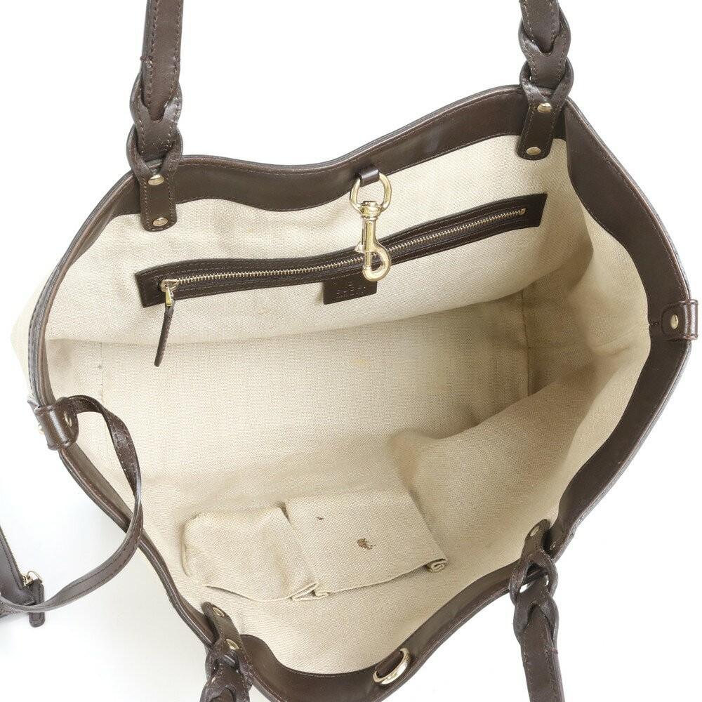 GUCCI Hand Bag Tote Purse Canvas Leather Beige Authentic