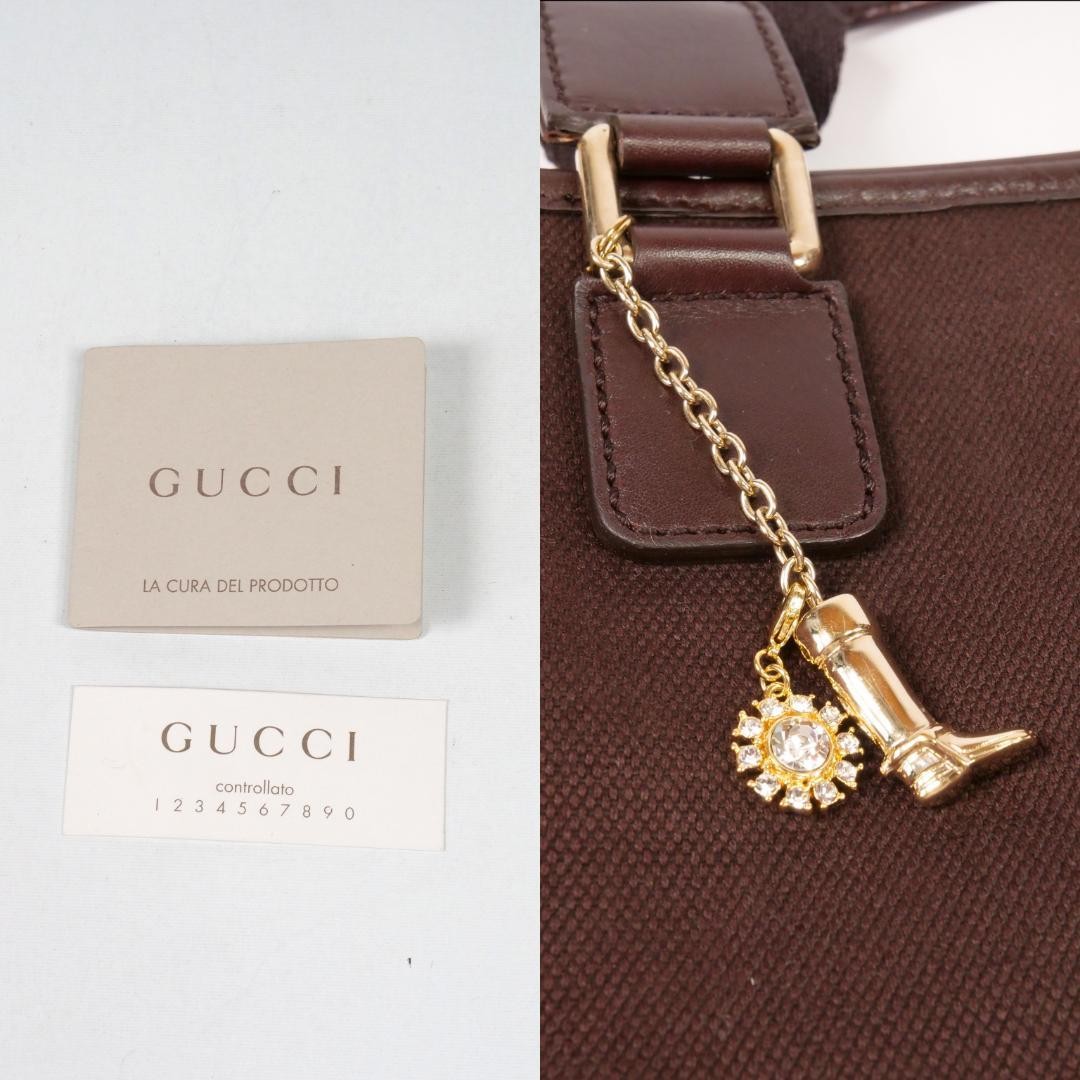 GUCCI Hand Bag Tote Purse Canvas Leather Brown Authentic