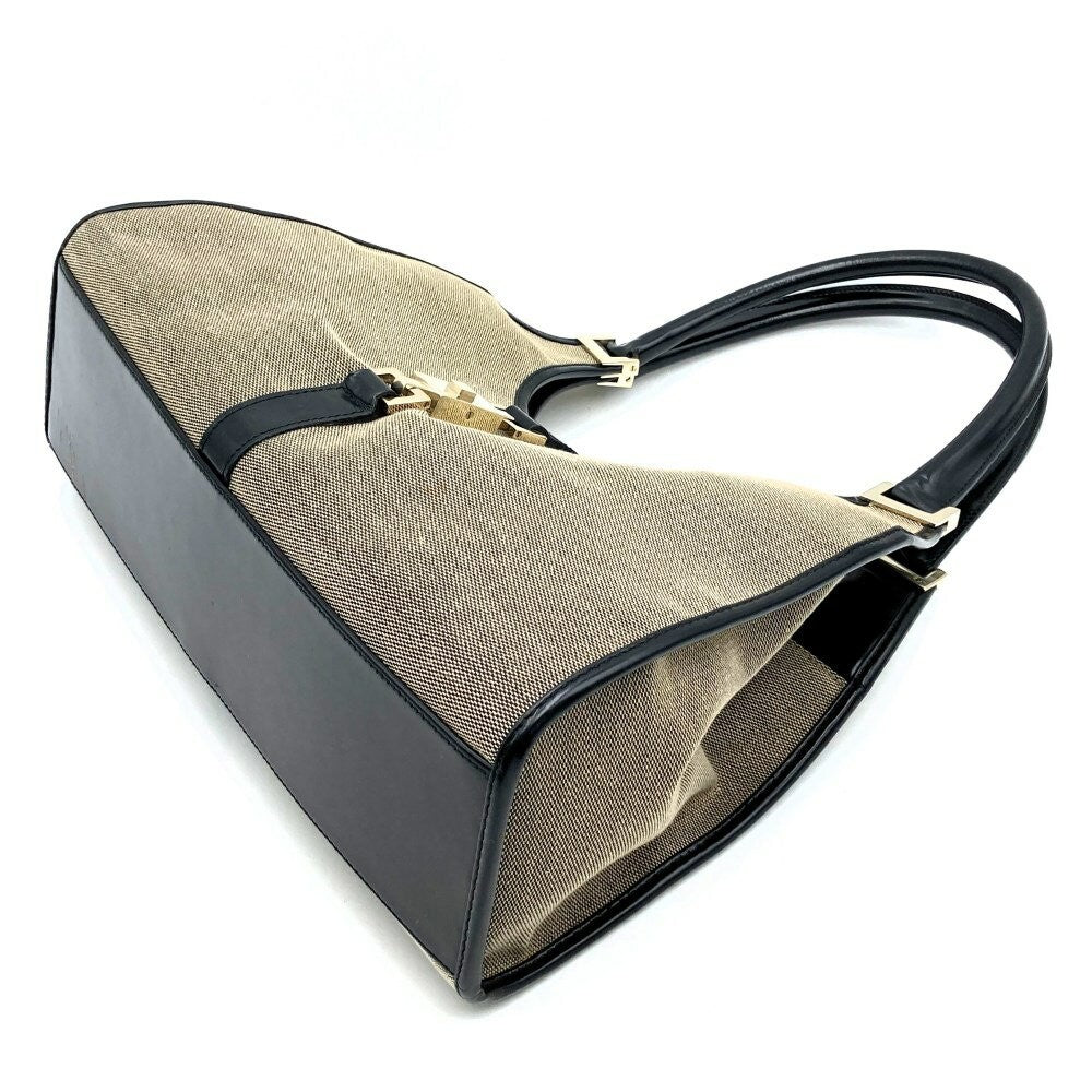 GUCCI Hand Bag Tote Purse Canvas Leather Gray Authentic