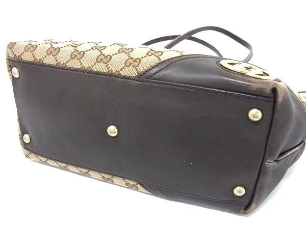 GUCCI Hand Bag Tote Purse GG Canvas Leather Beige Brown Authentic