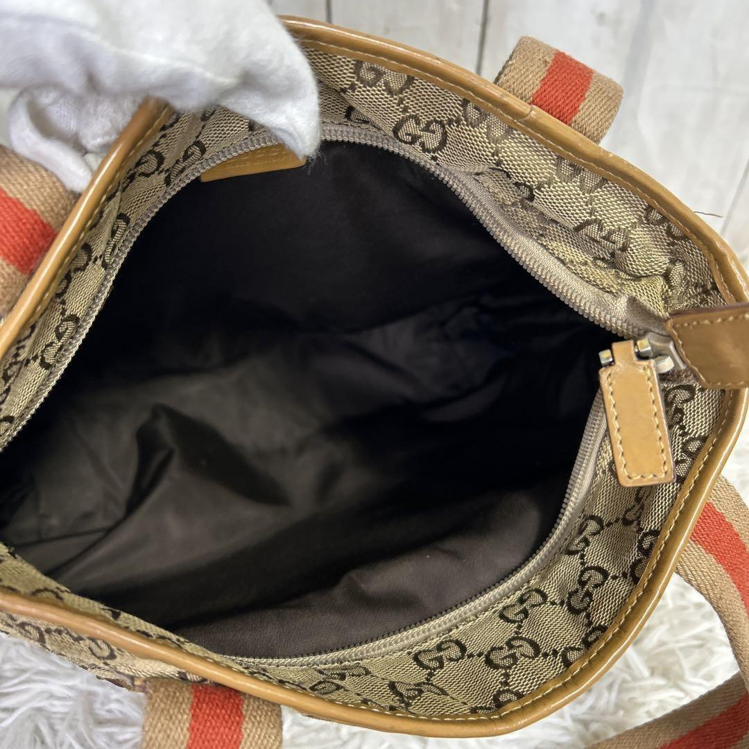 GUCCI Hand Bag Tote Purse GG Canvas Leather Brown Authentic