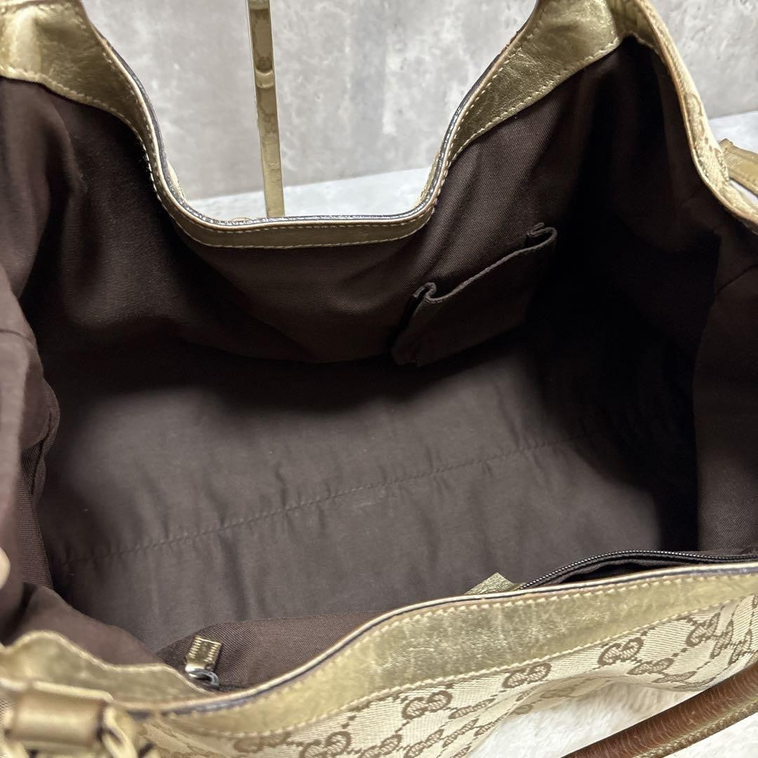 GUCCI Hand Bag Tote Purse GG Canvas Leather Brown Gold Authentic