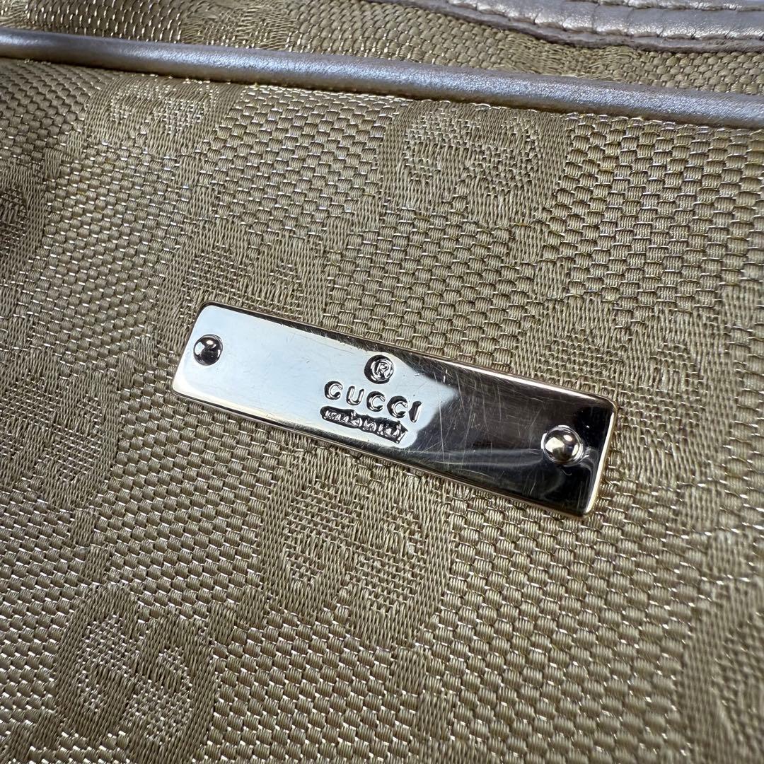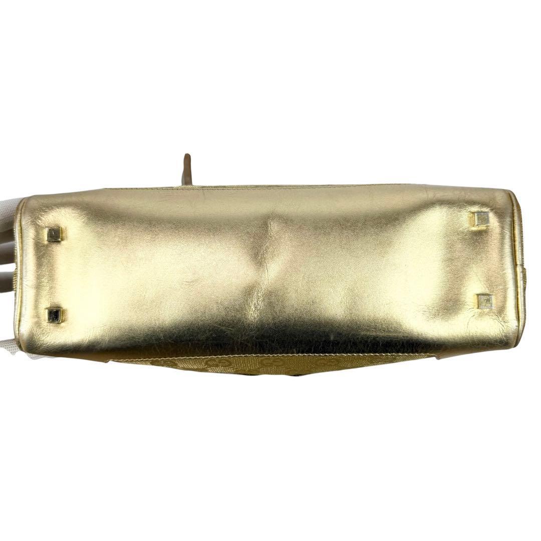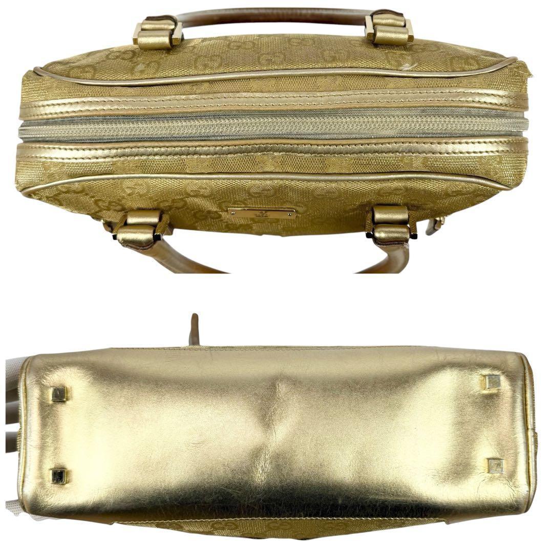 GUCCI Hand Bag Tote Purse GG Canvas Leather Gold Beige Authentic