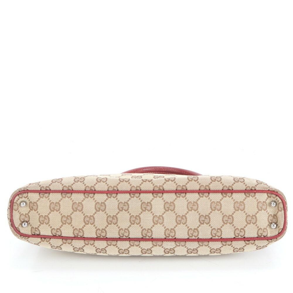 GUCCI Hand Bag Tote Purse GG Canvas Leather Red Brown Authentic