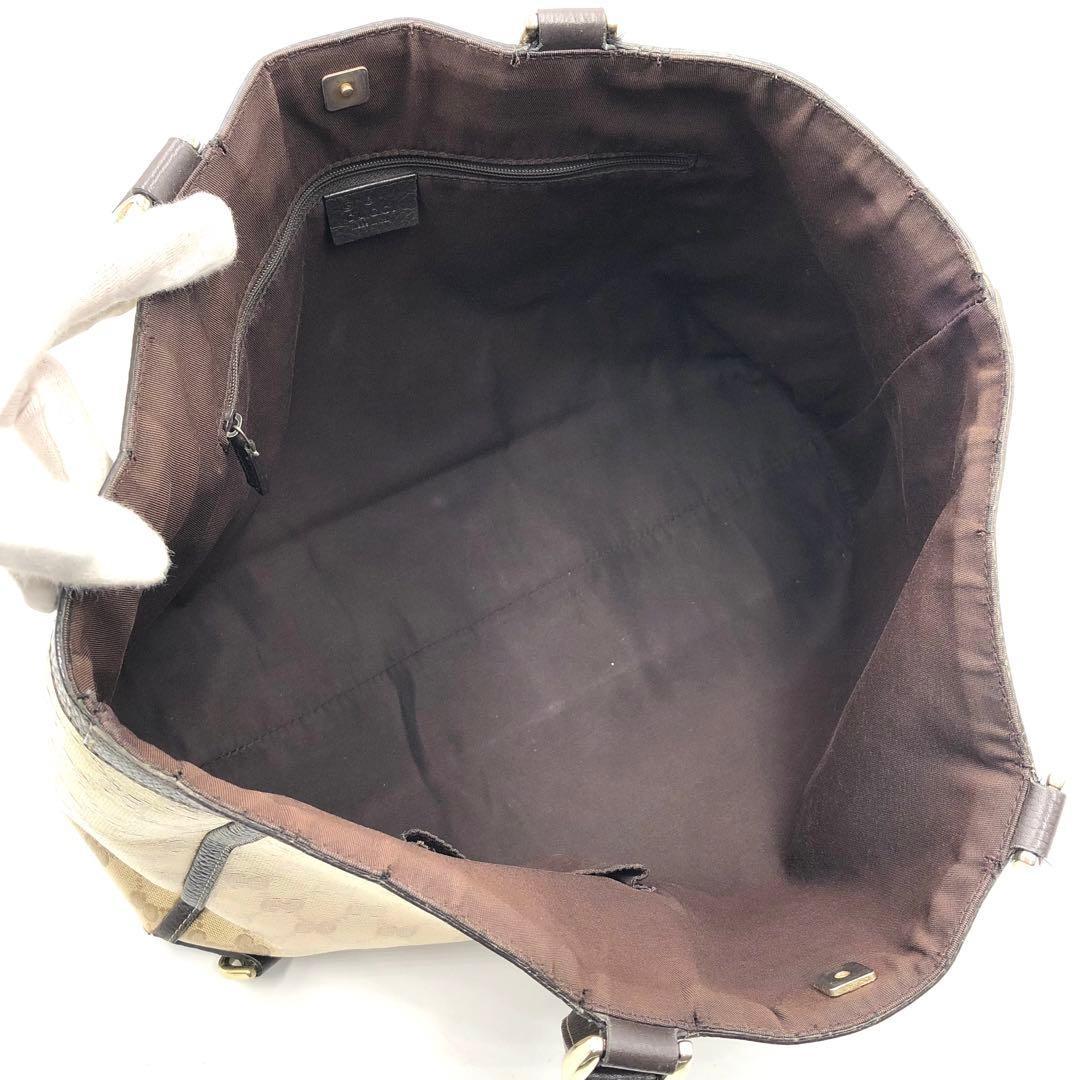 GUCCI Hand Bag Tote Purse GG Crystal PVC Canvas Leather Dark Brown Authentic