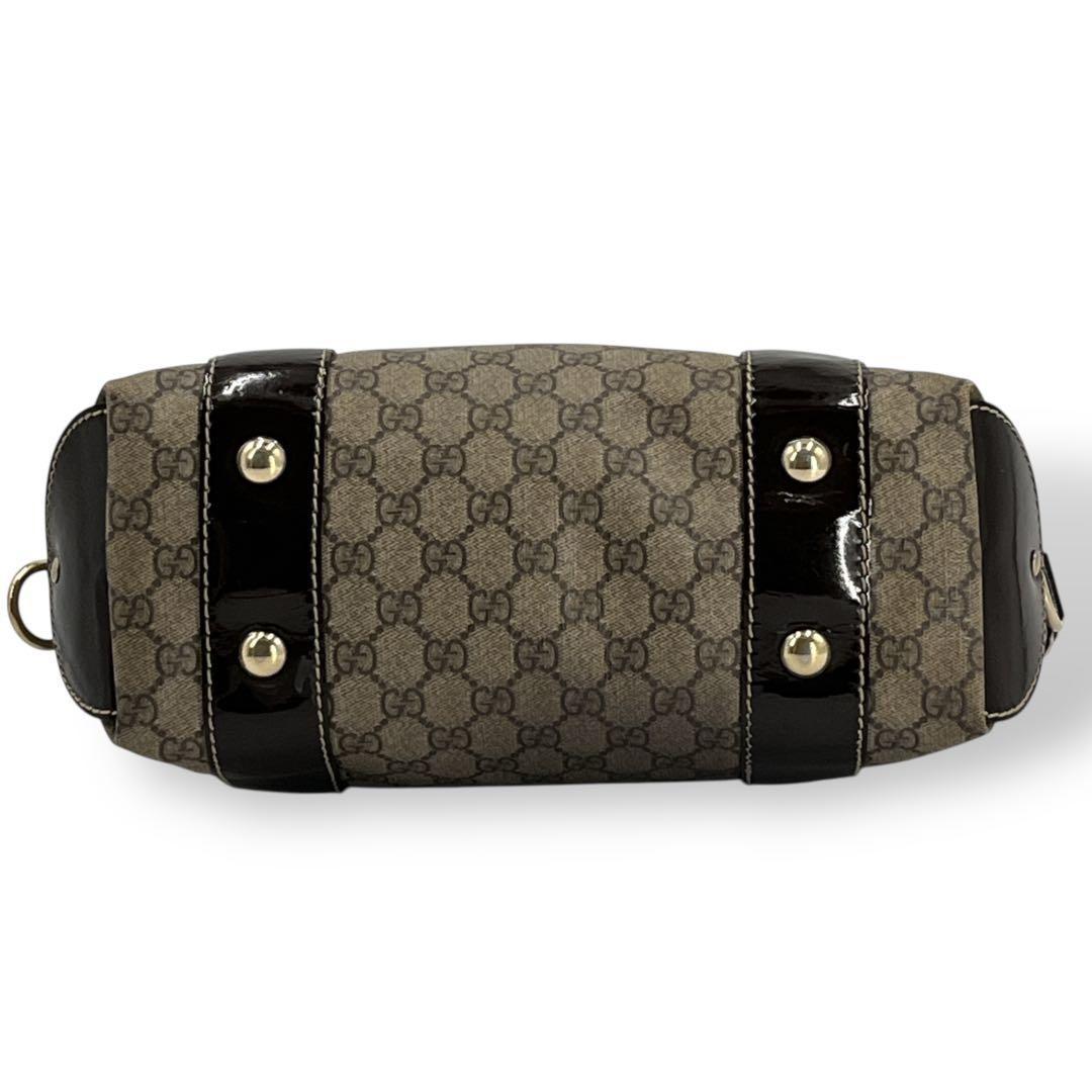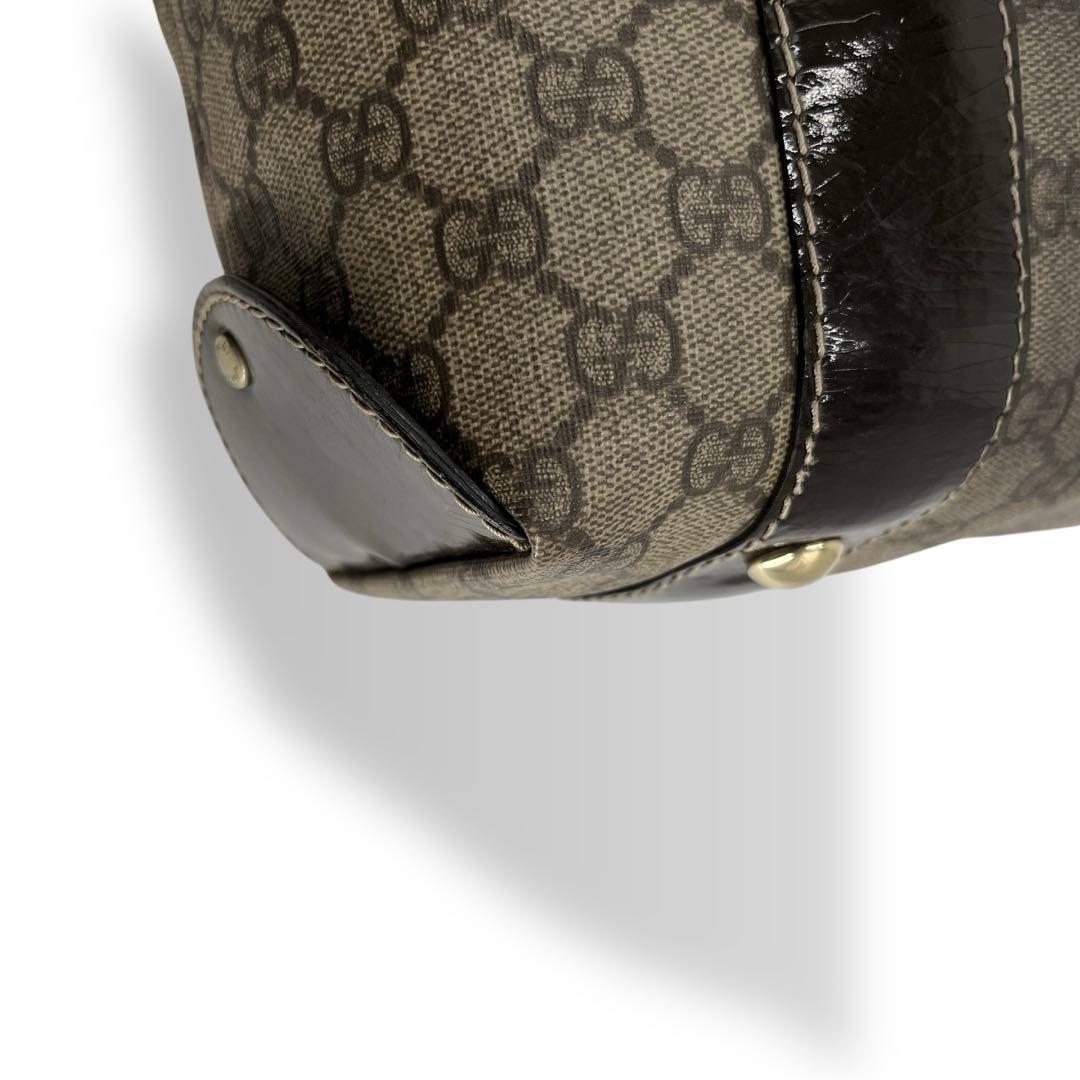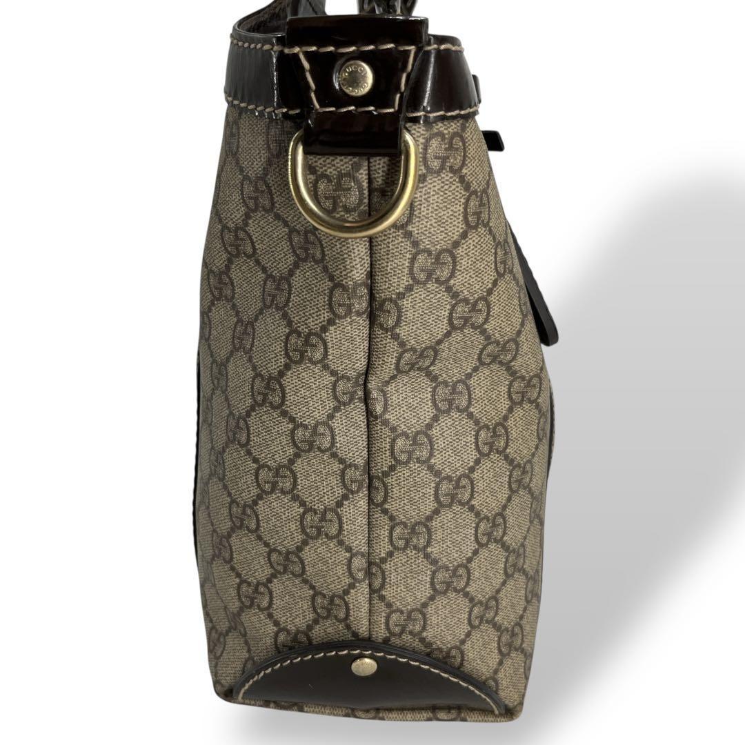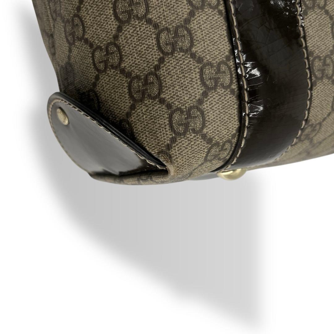 GUCCI Hand Bag Tote Purse GG Supreme PVC Patent Leather Beige Brown Authentic
