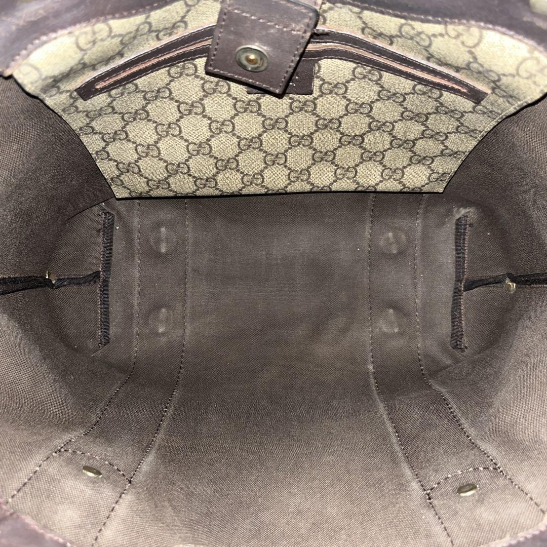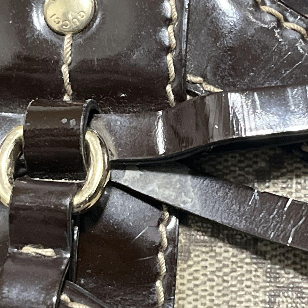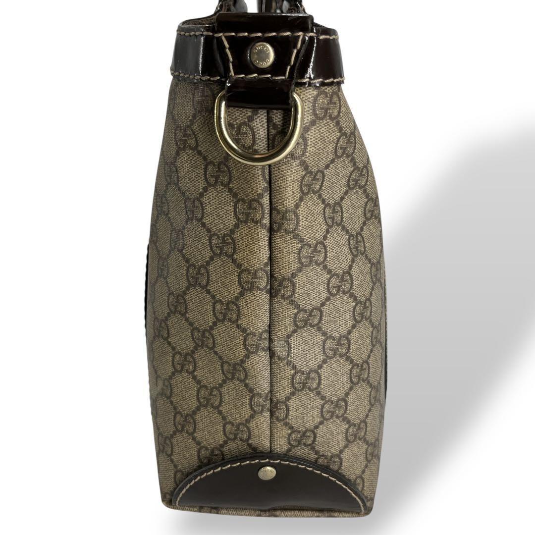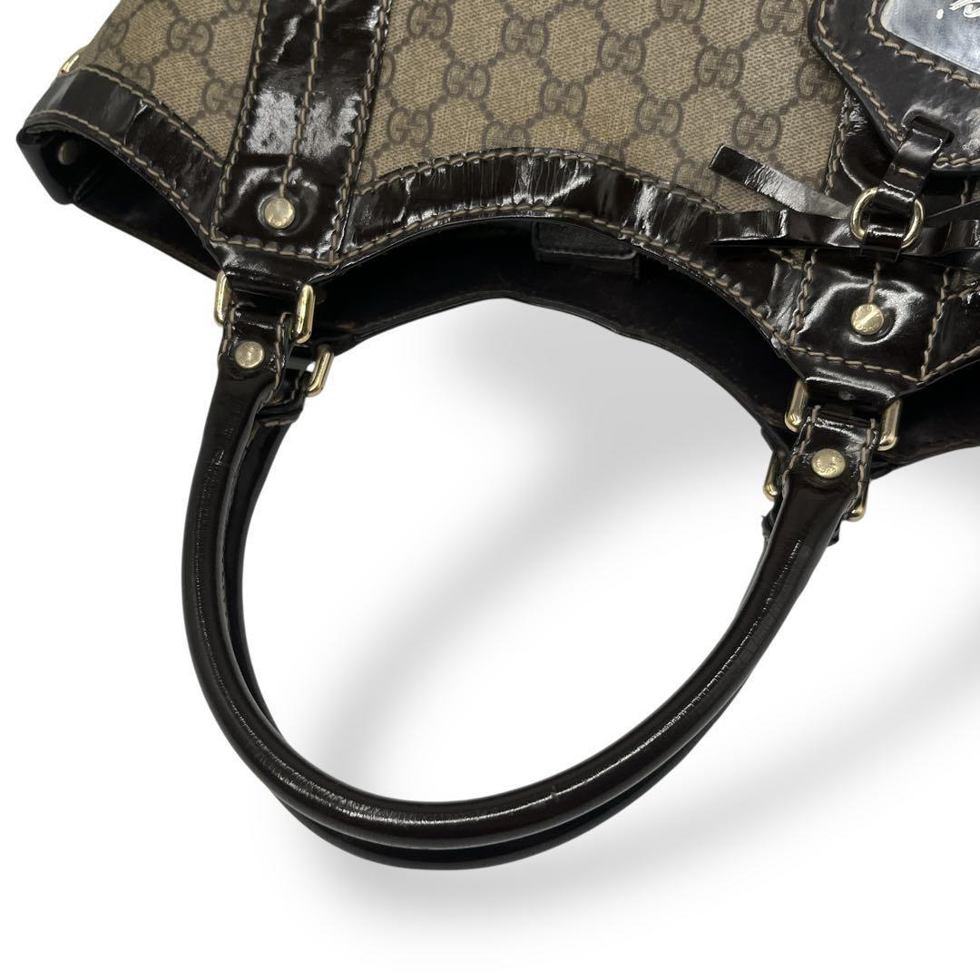 GUCCI Hand Bag Tote Purse GG Supreme PVC Patent Leather Beige Brown Authentic