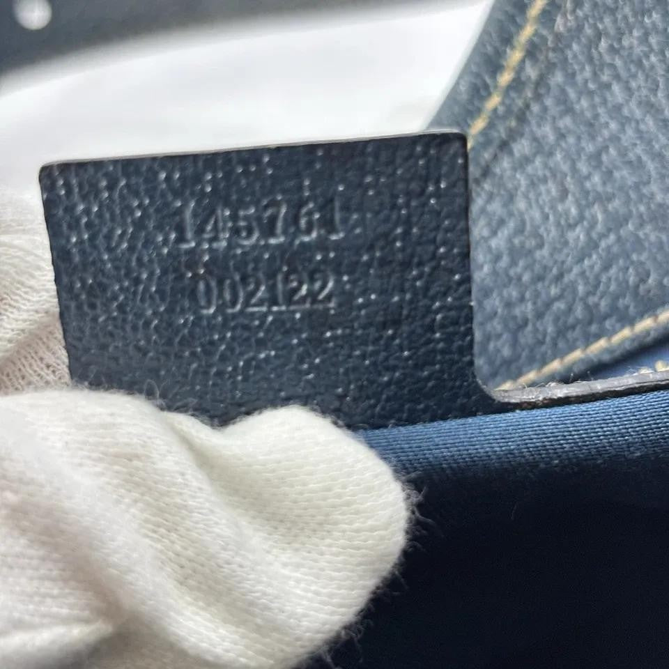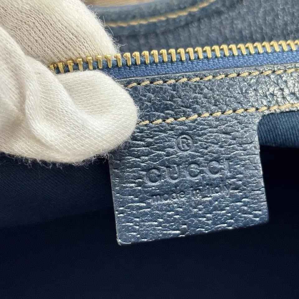 GUCCI Hand Bag Tote Purse Horsebit Canvas Leather Brown Blue Authentic