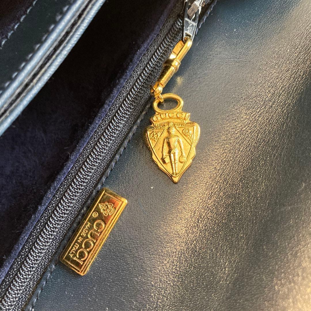 GUCCI Hand Bag Tote Purse Leather Navy Authentic