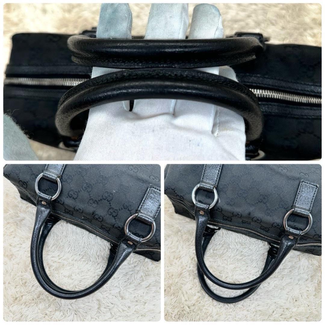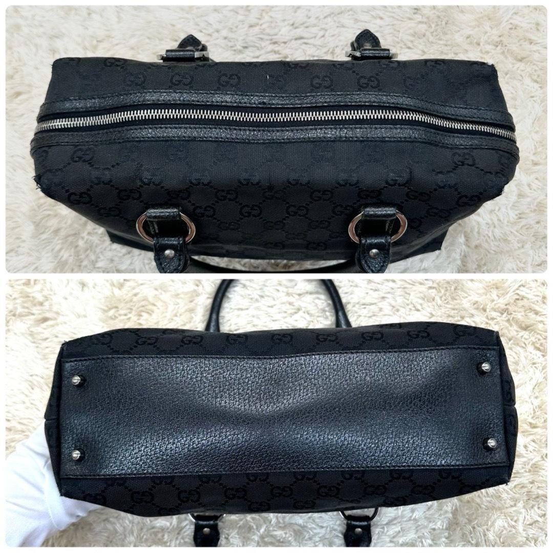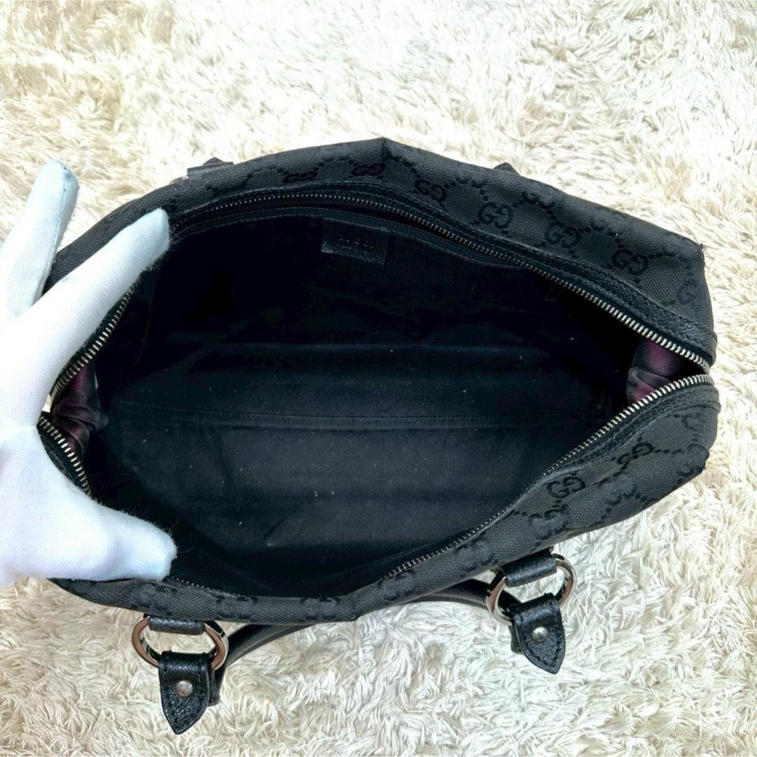 GUCCI Hand Bag Tote Purse Mini Boston Bag GG Canvas Black Authentic
