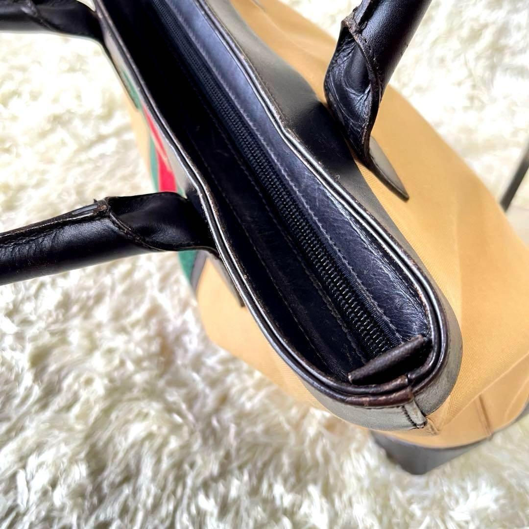 GUCCI Hand Bag Tote Purse Sherry Line Canvas Leather Brown Authentic