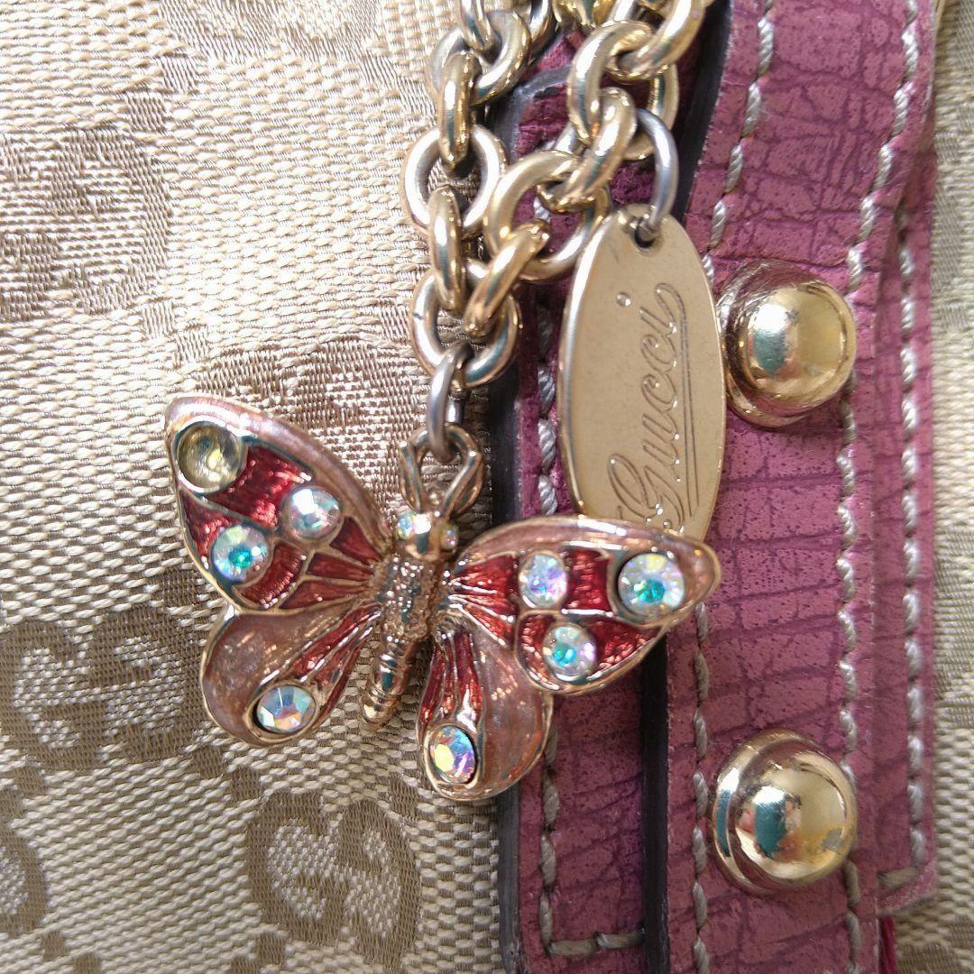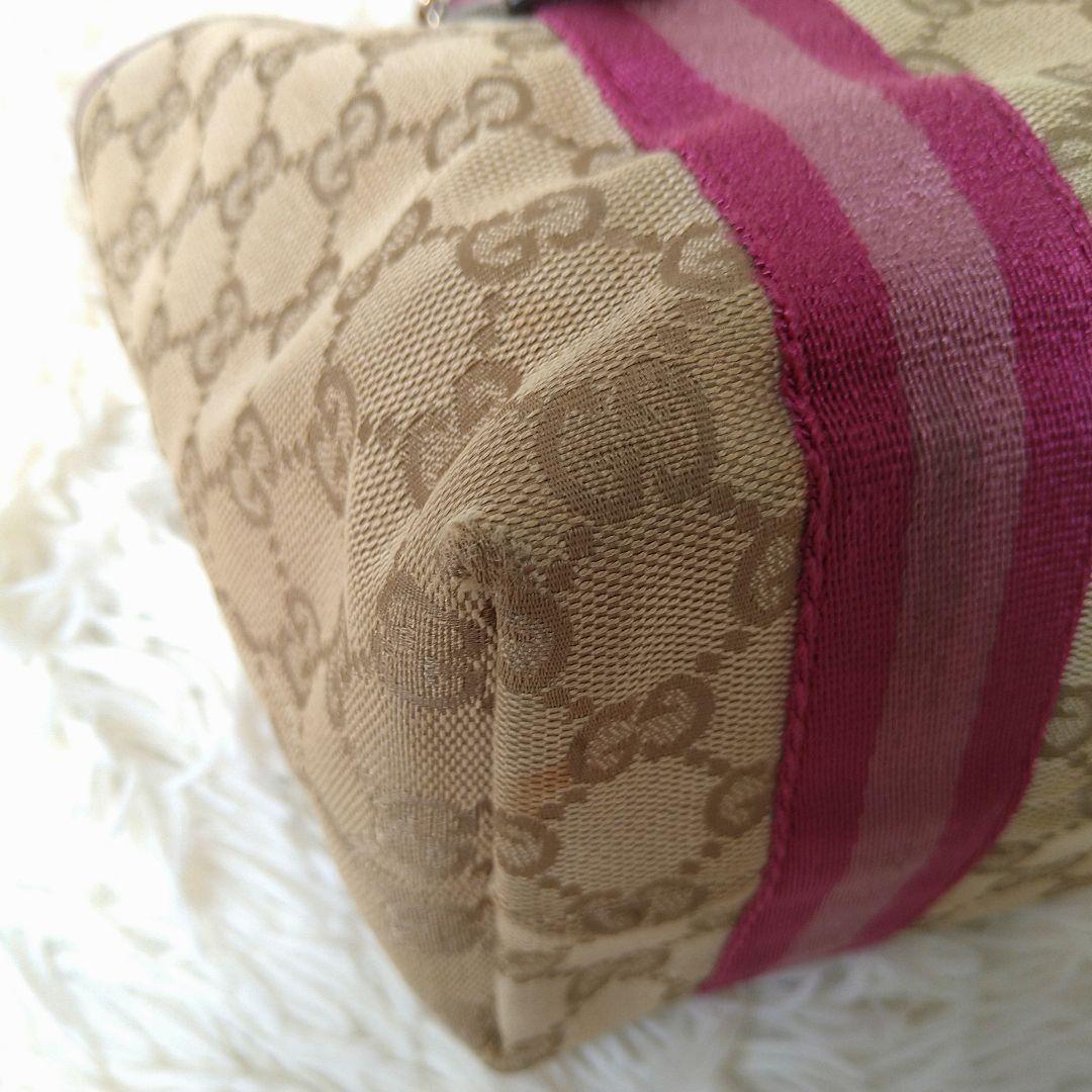 GUCCI Hand Bag Tote Purse Sherry Line GG Canvas Beige Pink Authentic