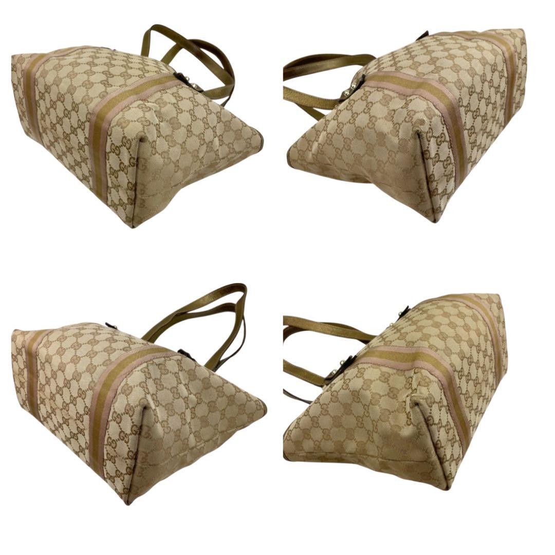 GUCCI Hand Bag Tote Purse Sherry Line GG Canvas Leather Authentic