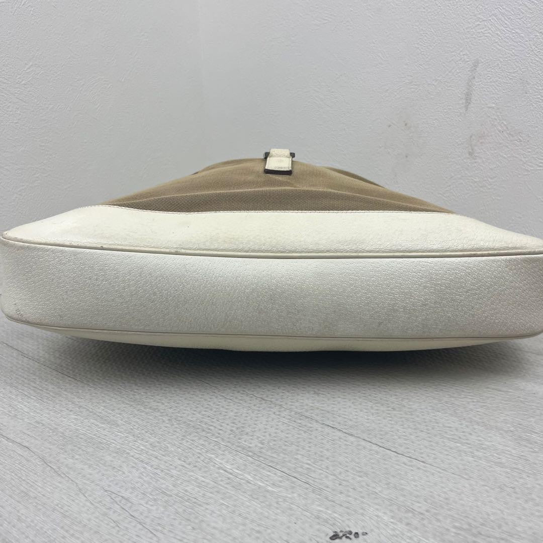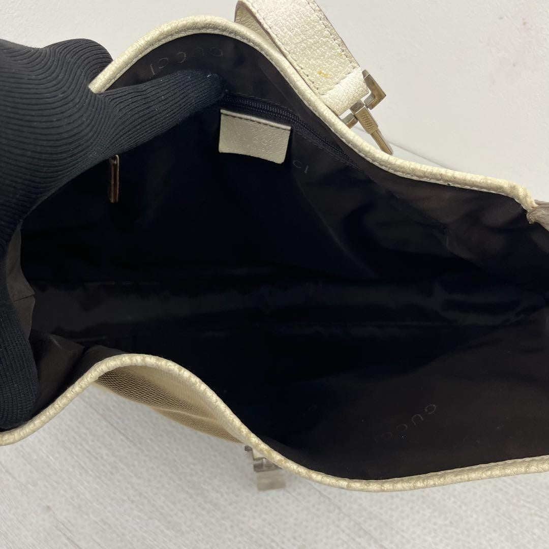 GUCCI Hand Shoulder Bag Tote Purse Canvas Leather Beige White Authentic