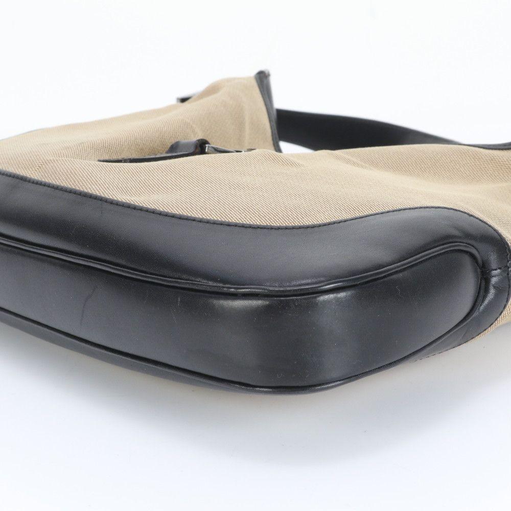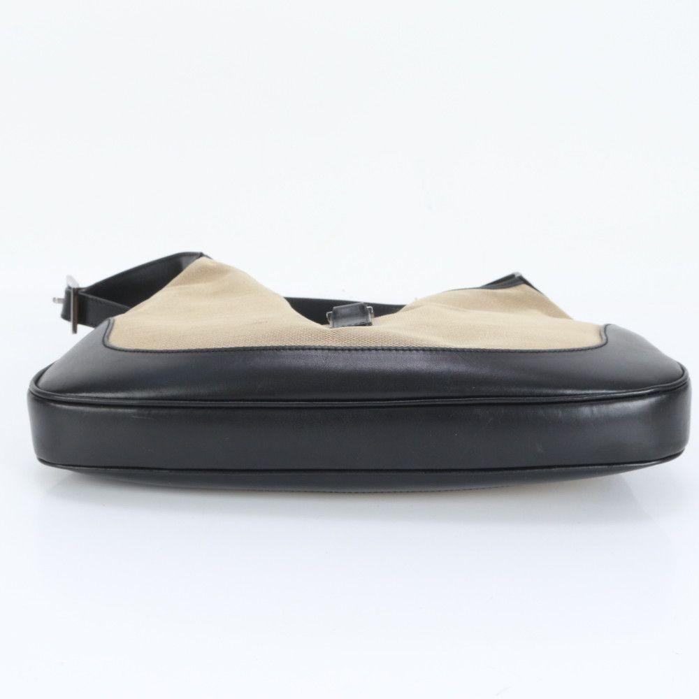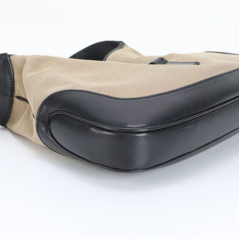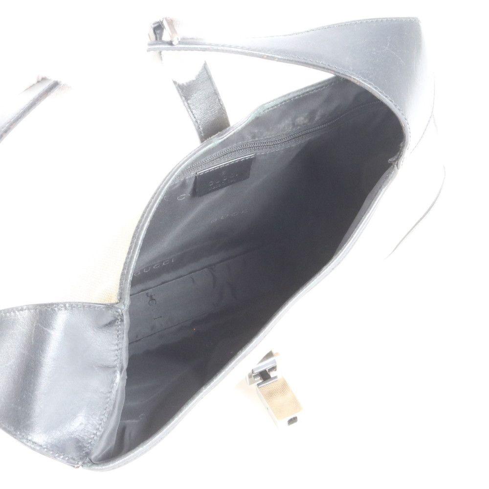 GUCCI Hand Shoulder Bag Tote Purse Canvas Leather Black Beige Authentic