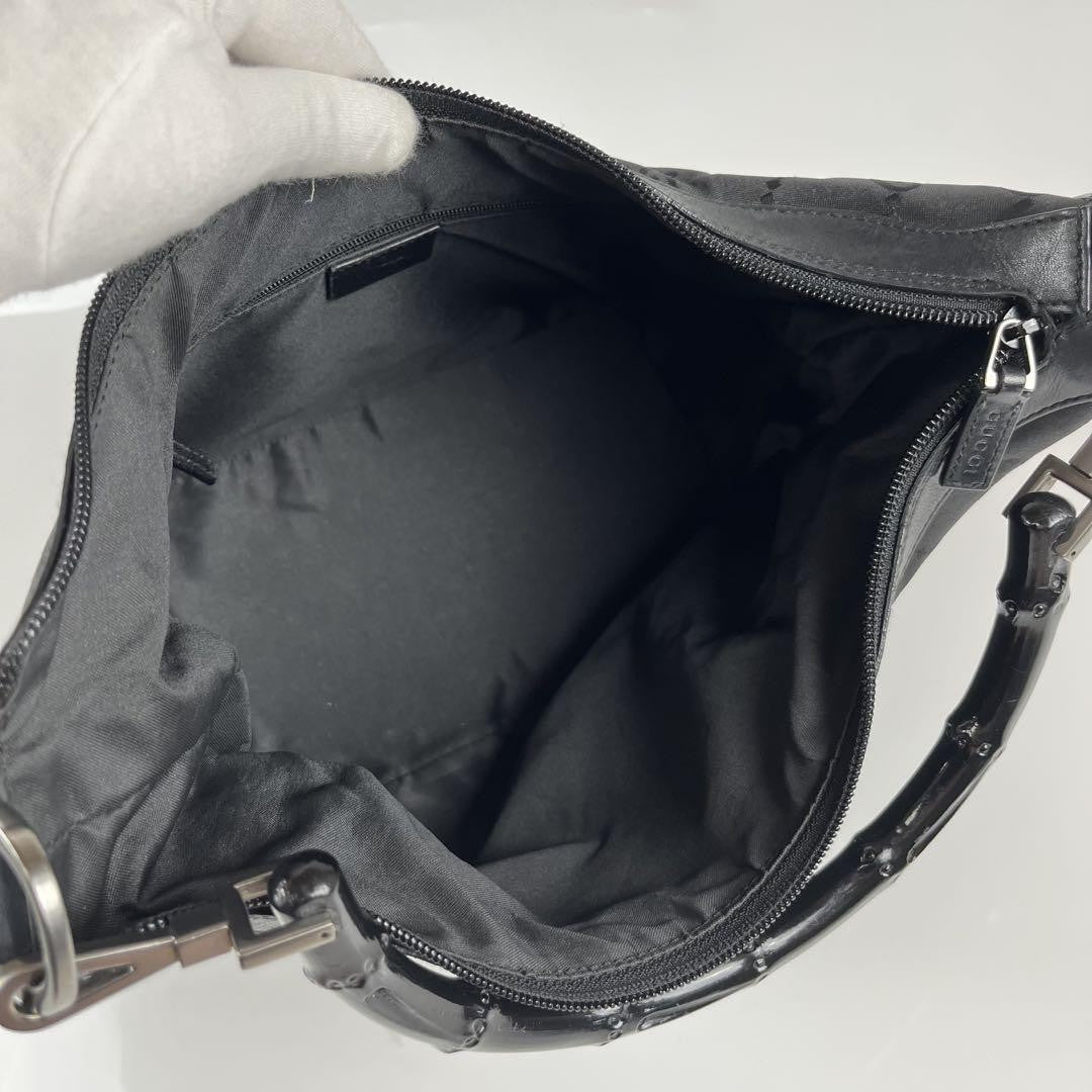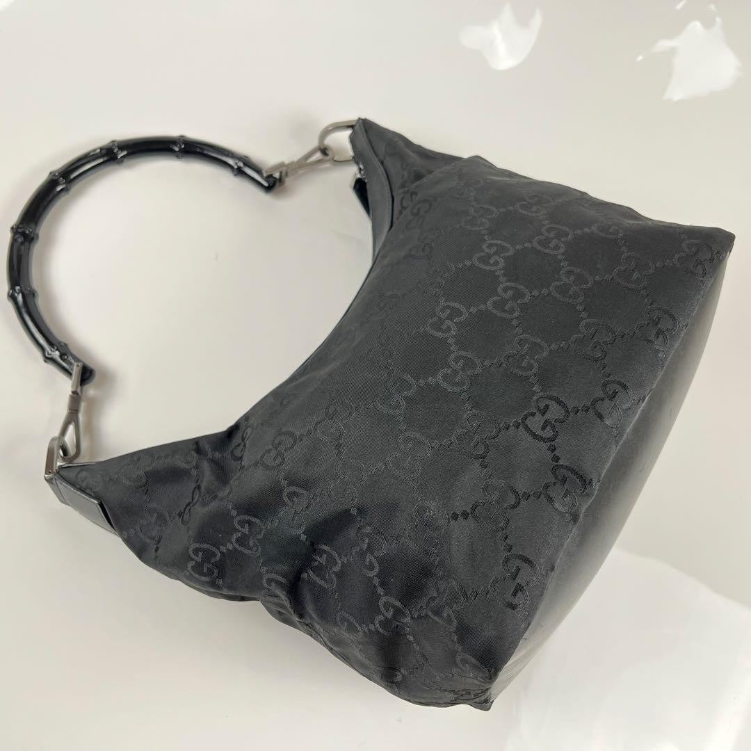 GUCCI Hand Shoulder Bag Tote Purse GG Bamboo Nylon Black Authentic
