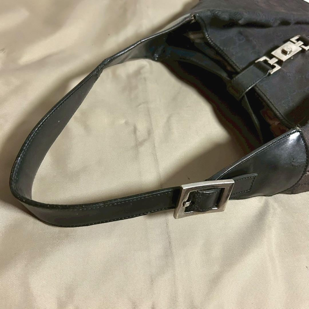 GUCCI Hand Shoulder Bag Tote Purse GG Canvas Black Authentic