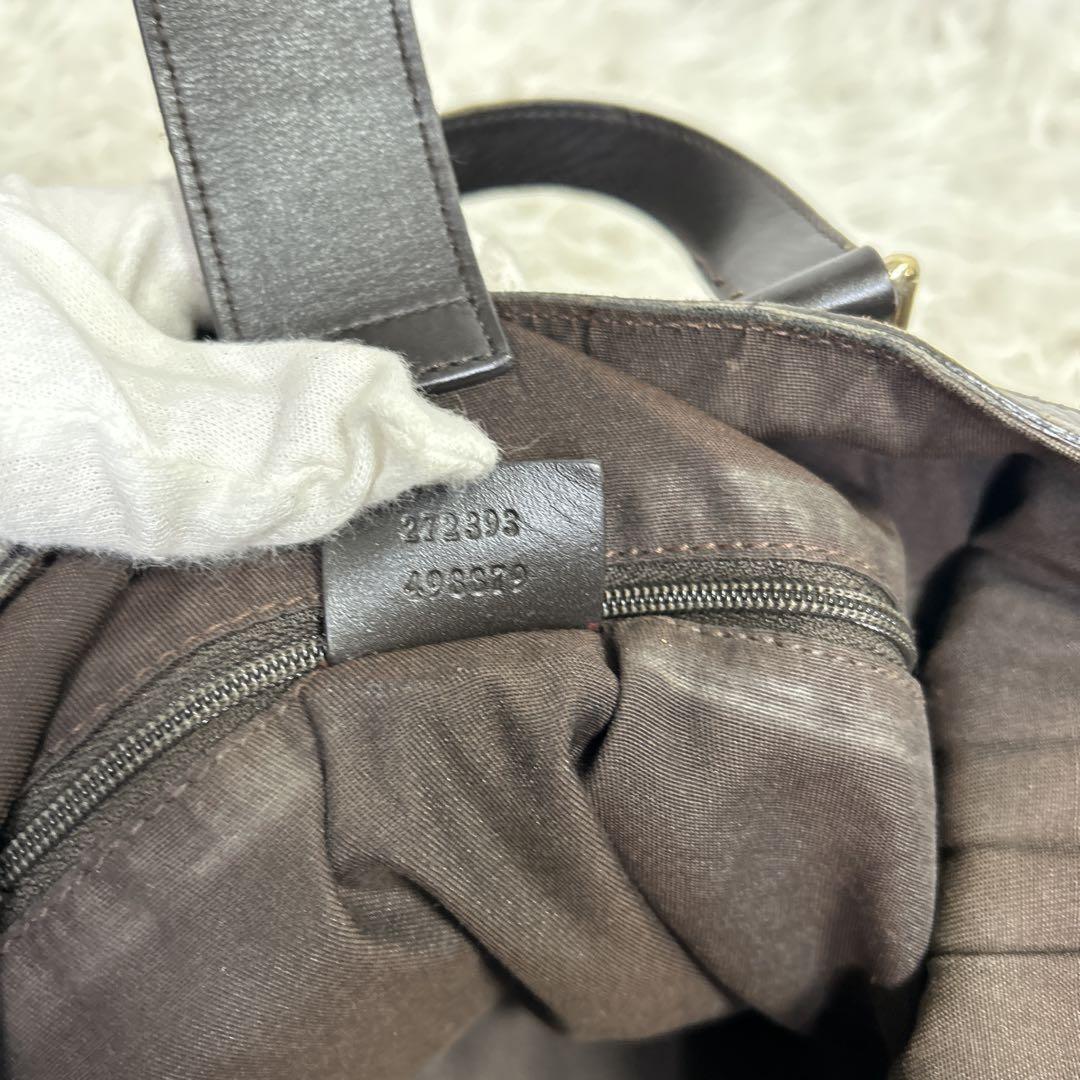 GUCCI Hand Shoulder Bag Tote Purse GG Supreme Leather Brown Authentic