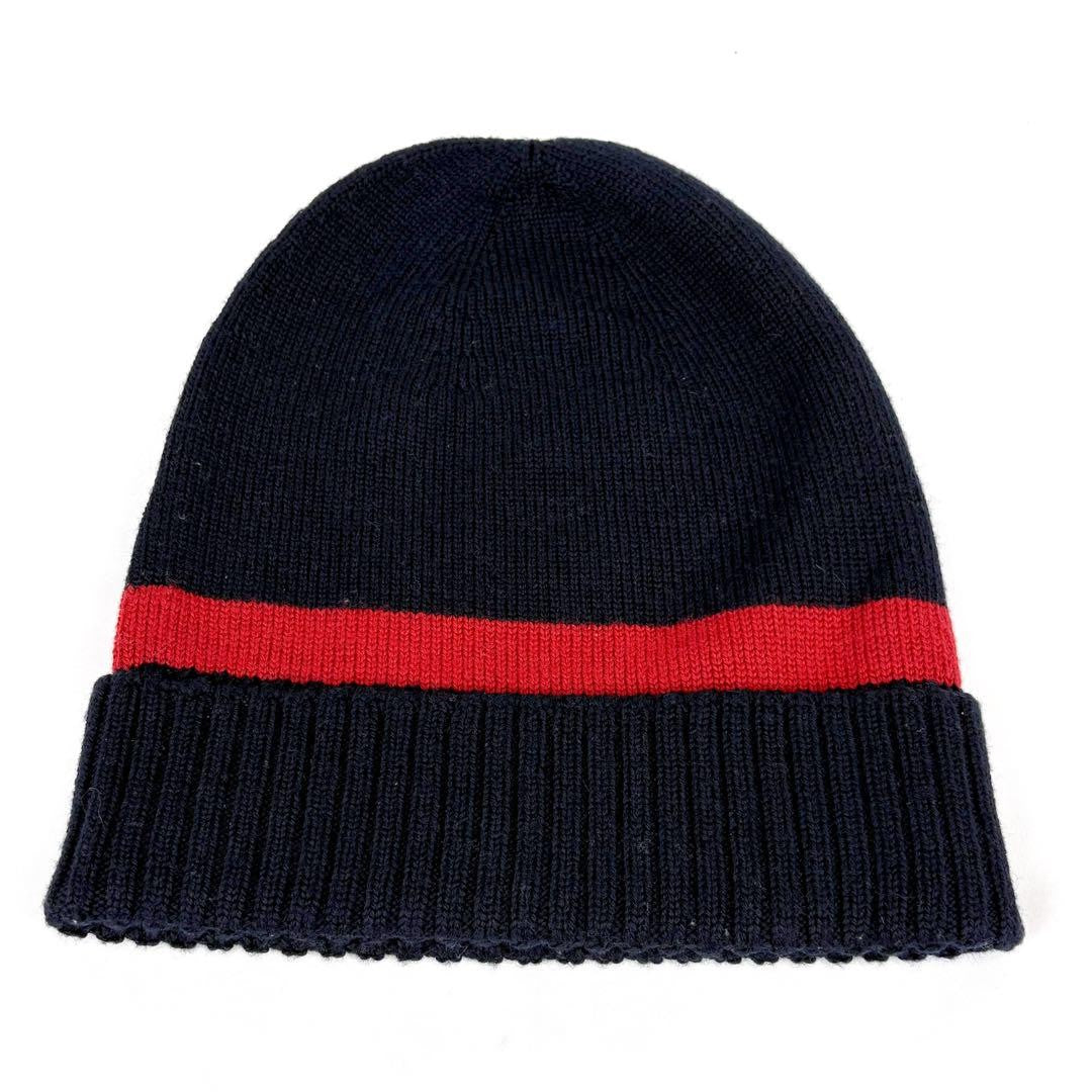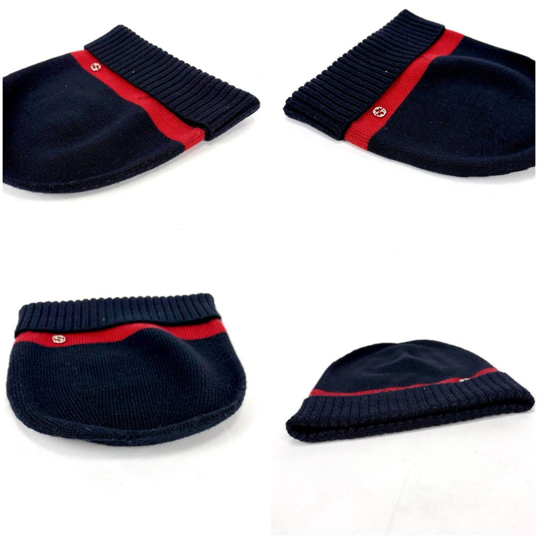 Gucci Knit Cap GG Logo Sherry Line Navy Red Size M Men's Authentic