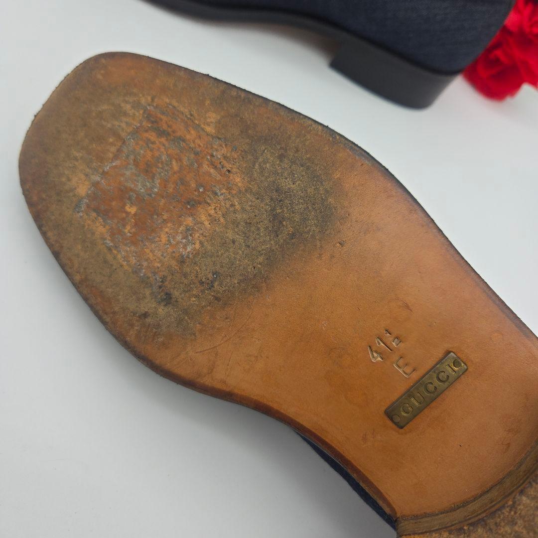 GUCCI Loafers Shoes Horsebit EU 41.5 US 8 Denim Leather Navy Authentic