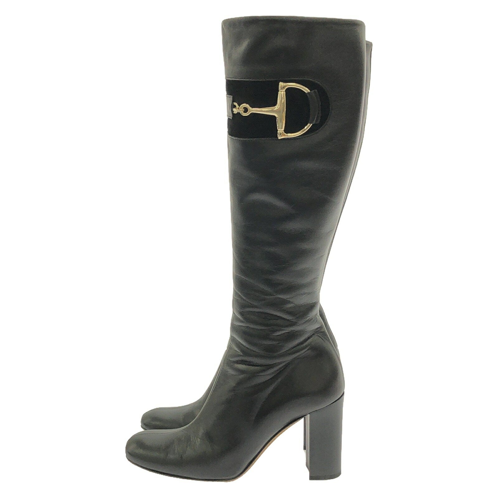 GUCCI Long Boots Shoes EU 36 US 6 Leather Black Authentic