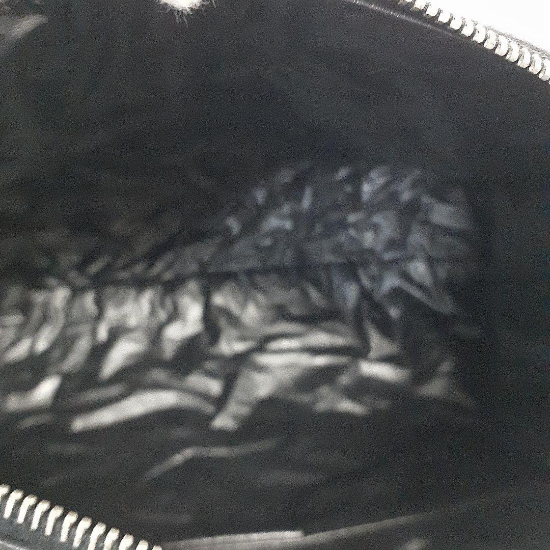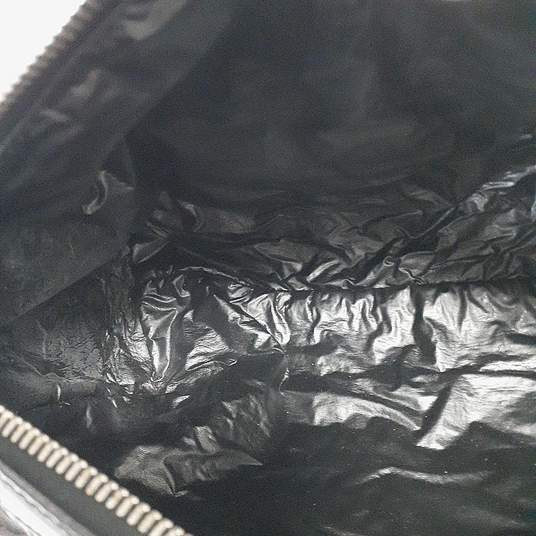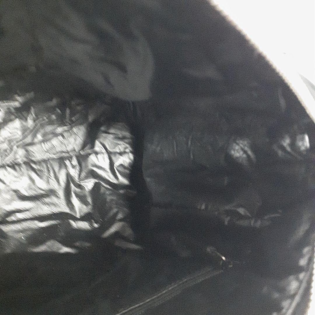 There is some light dirt on the white lines. The bag has some loose fabric, wrinkles, and scuffs inside, but it is still usable.