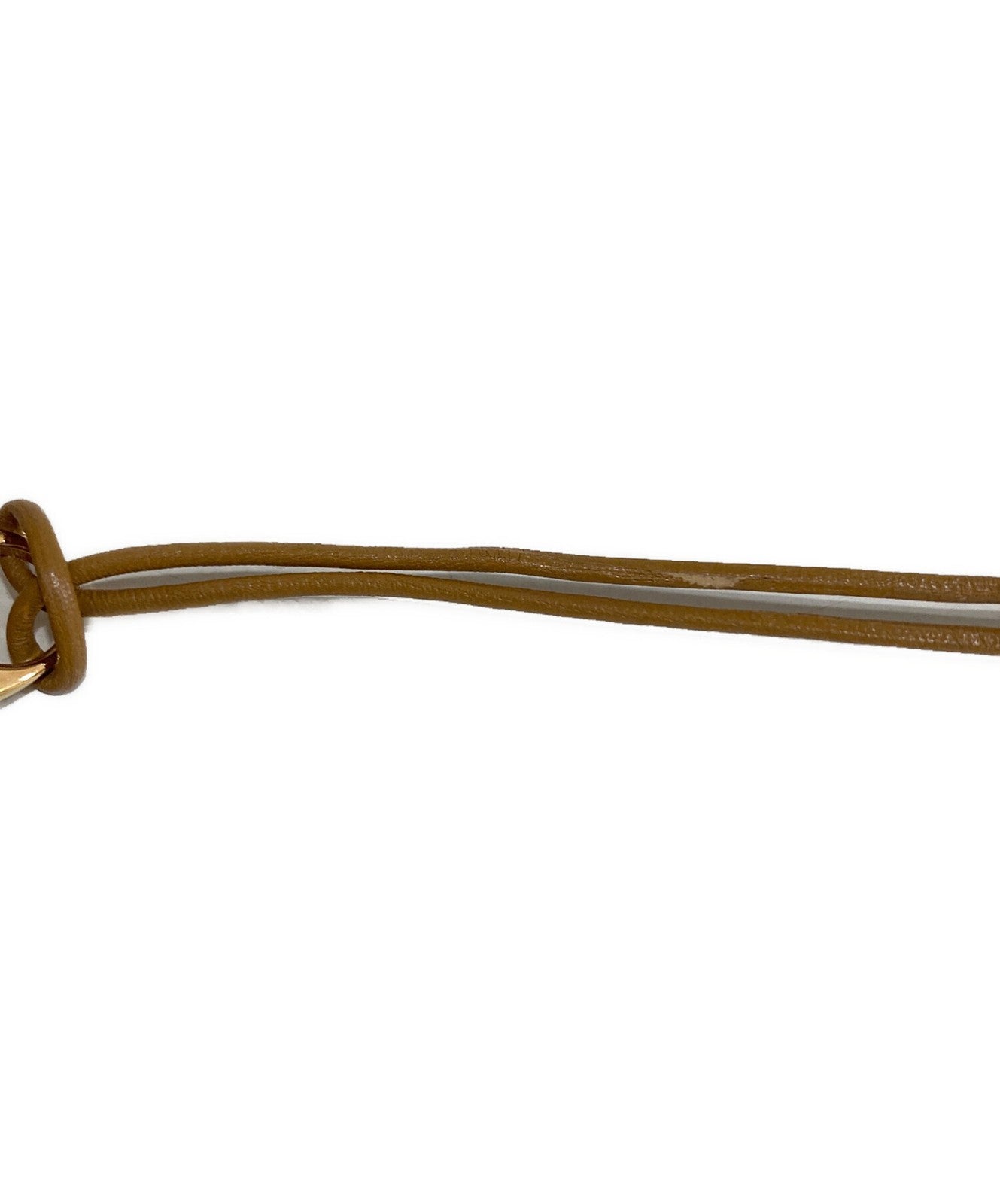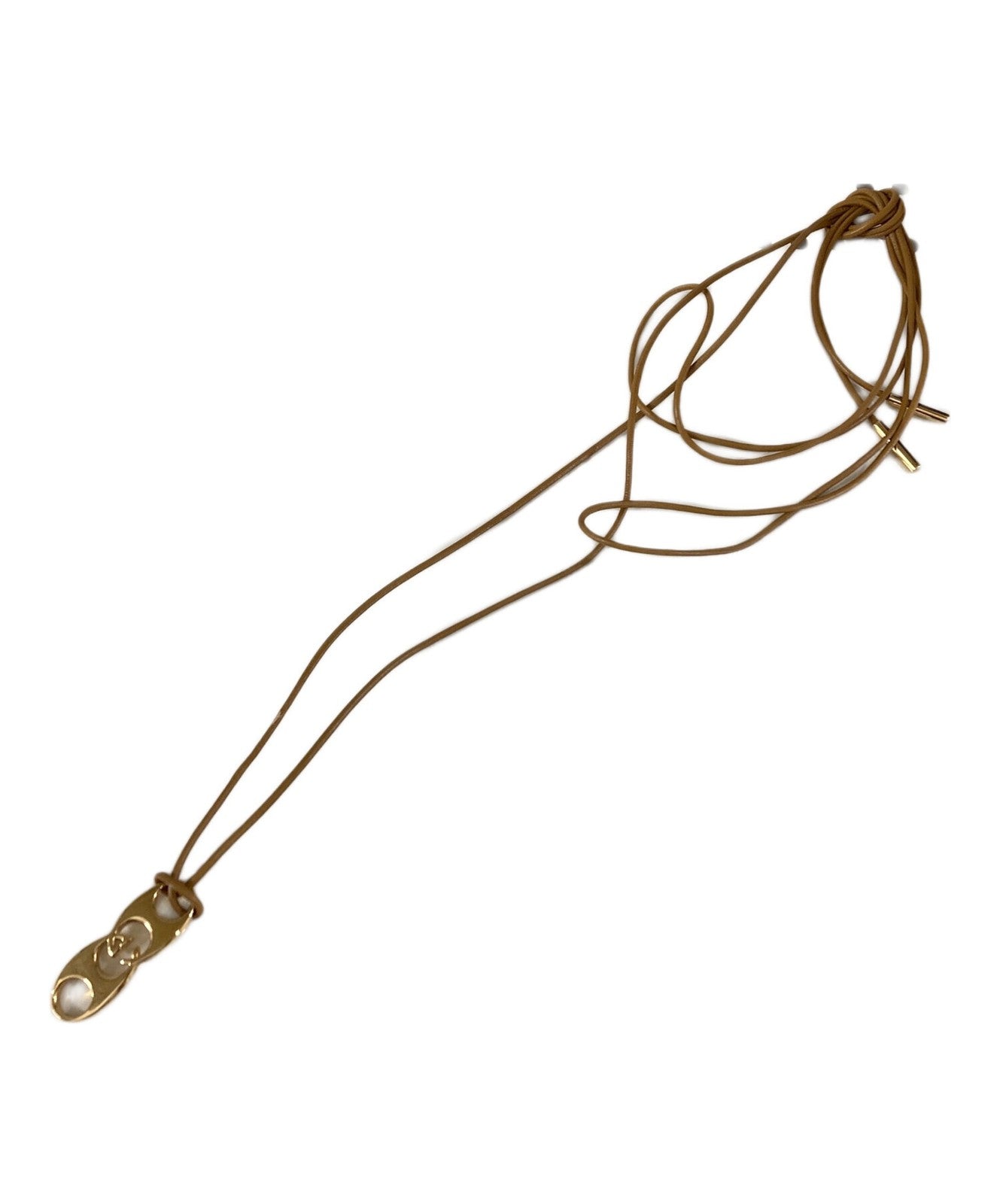GUCCI Necklace Pendant GG mark leather strap Gold Brown Women Accessory Auth