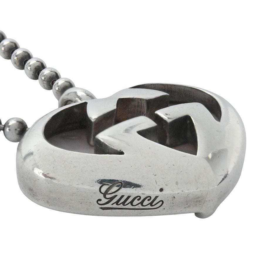 GUCCI Necklace Pendant Interlocking G Heart Silver Ag925 Women Accessory Auth