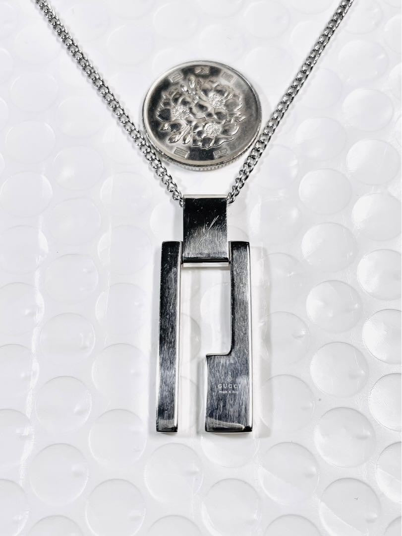 GUCCI Necklace Pendant Smart G logo Silver 925 Unisex Accessory Authentic