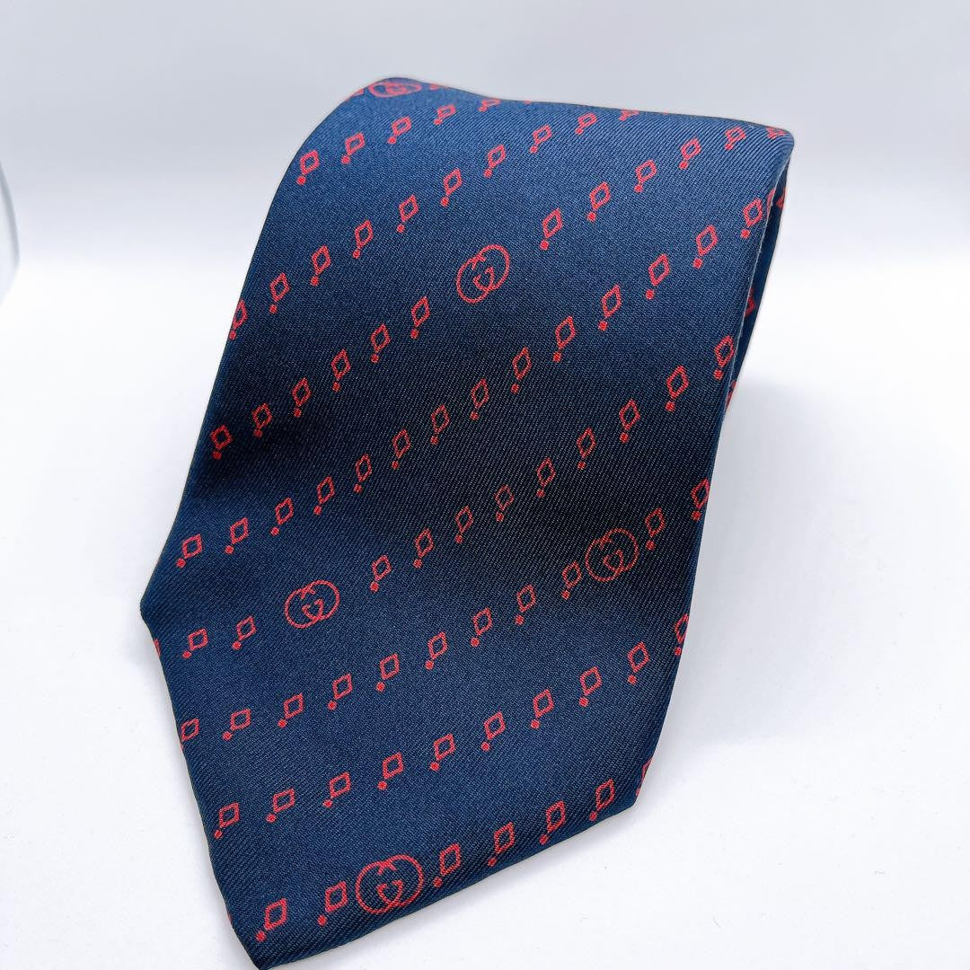 GUCCI Necktie Tie Blue All over logo pattern 100% Silk Geometric Made in Italy