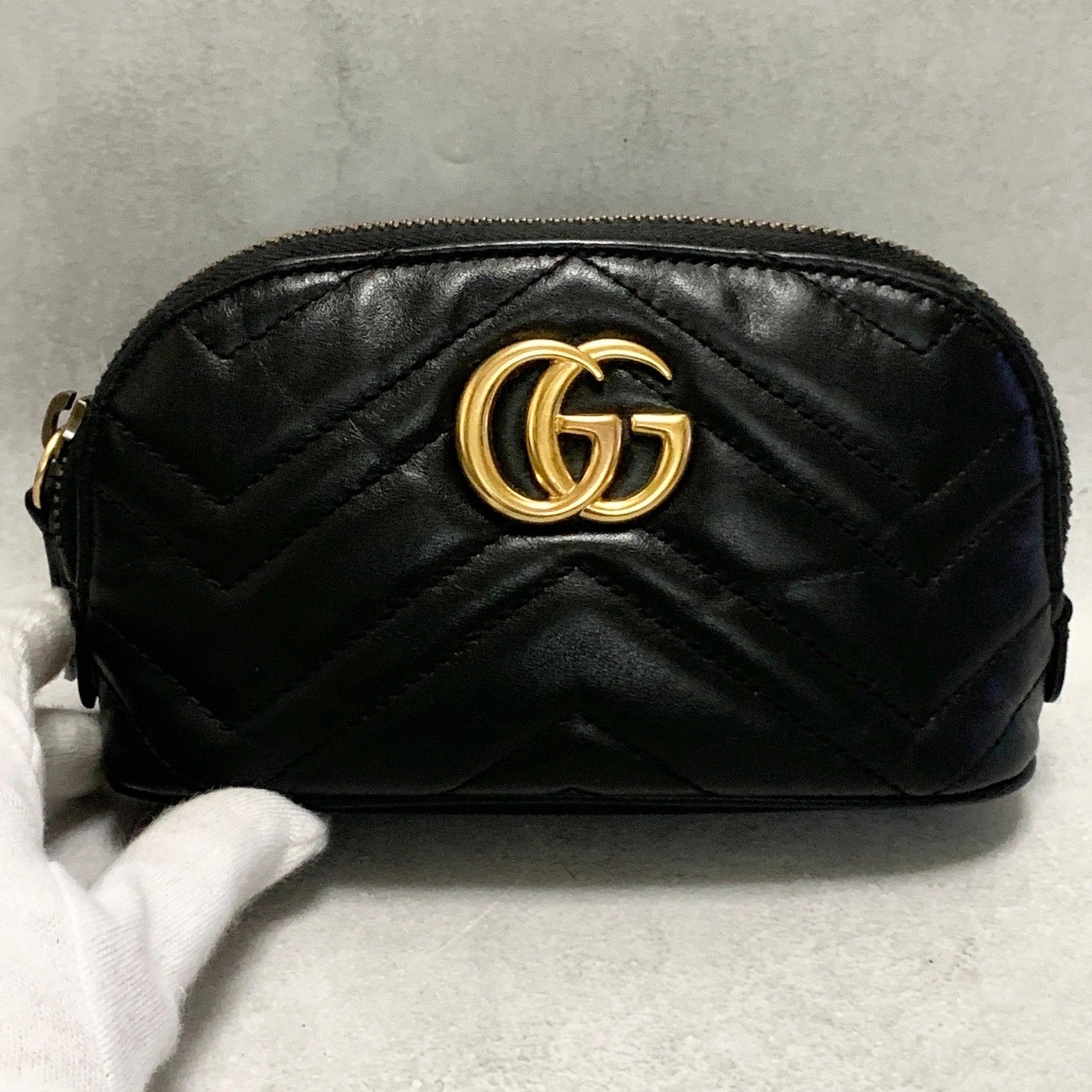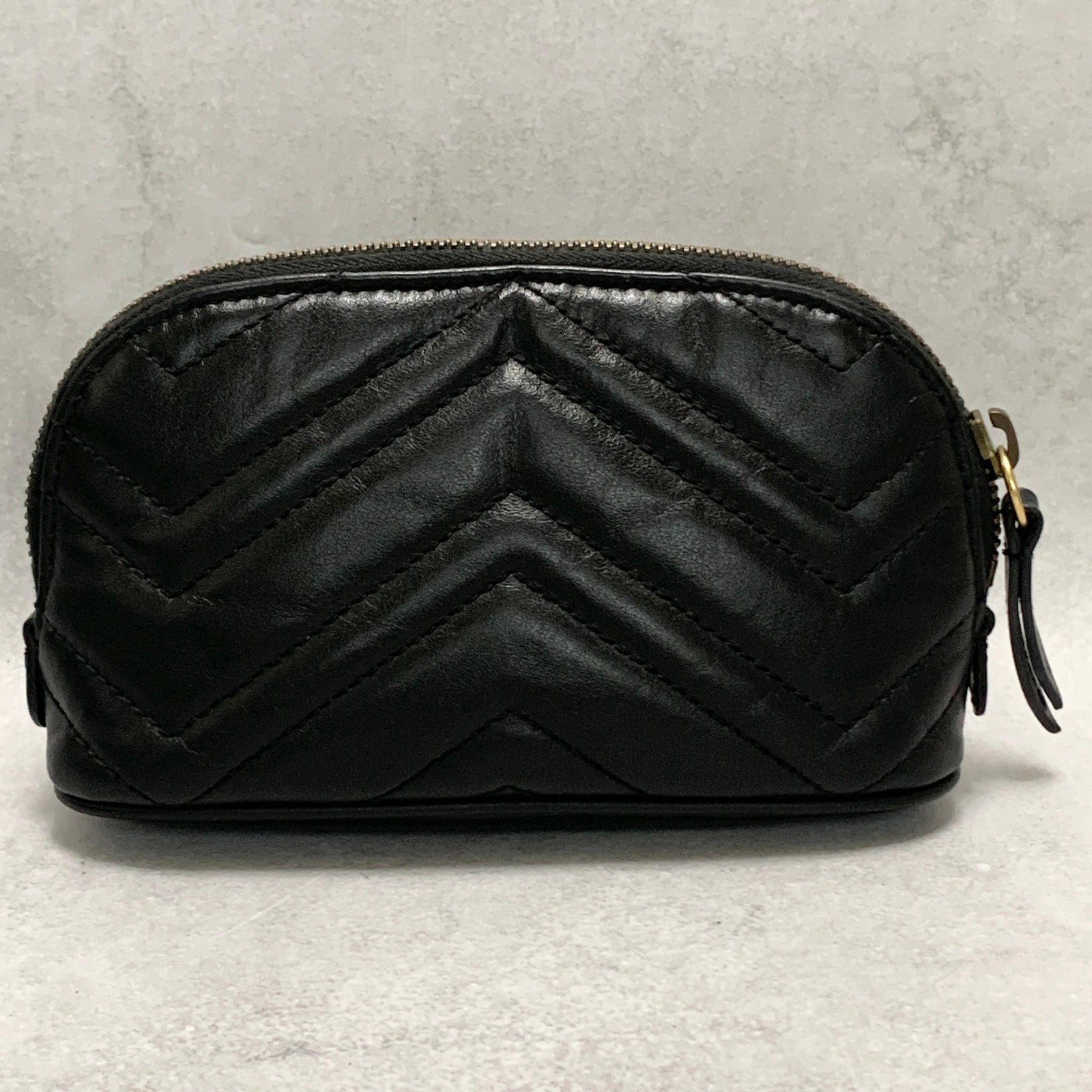 GUCCI Pouch GG Marmont Quilted Purse Cosmetic Leather Black Gold Authentic